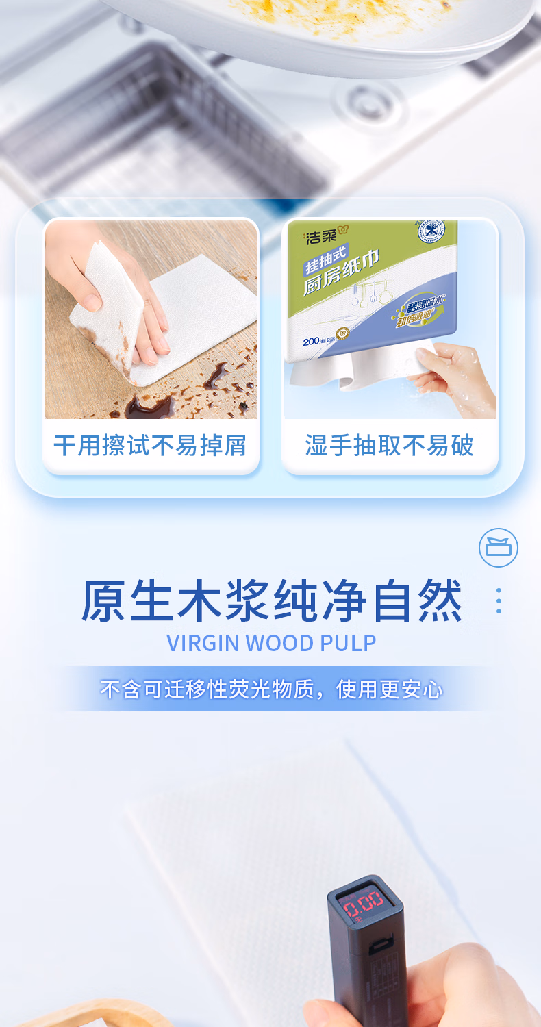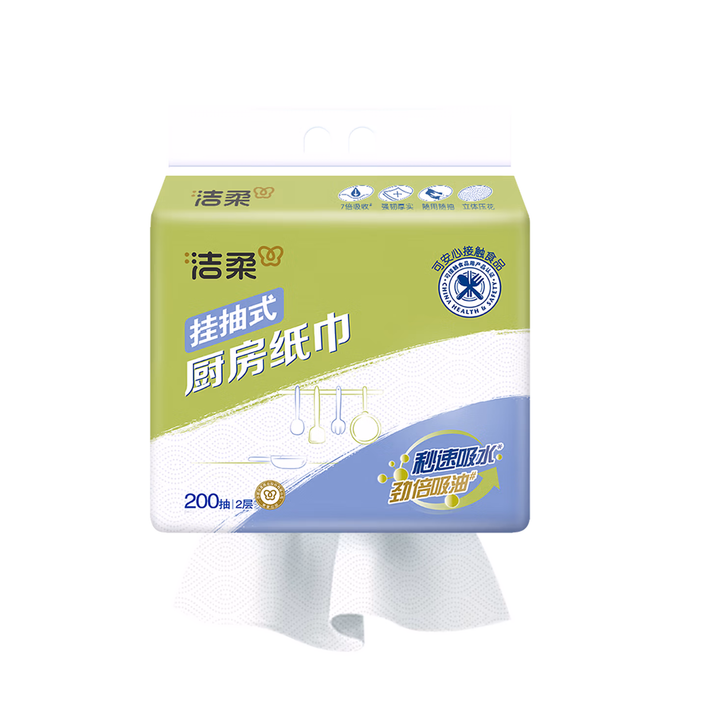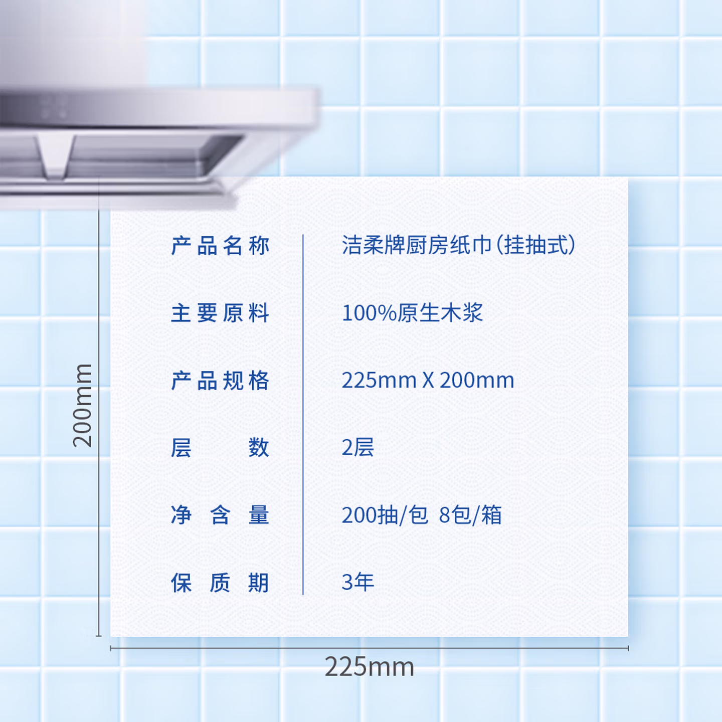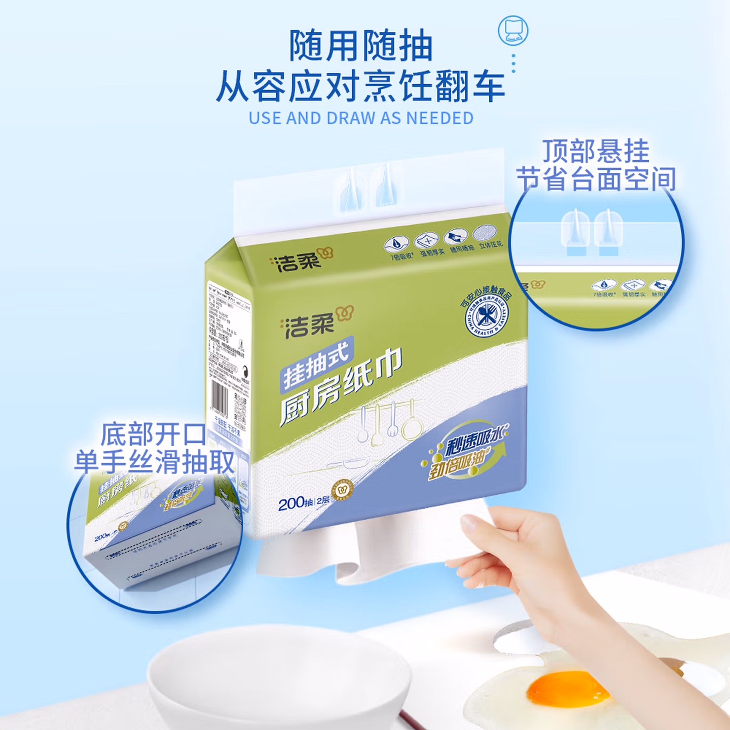 > 洁柔厨房抽纸200抽*4包新年清洁吸水吸油一次性懒人抹布大包悬挂式