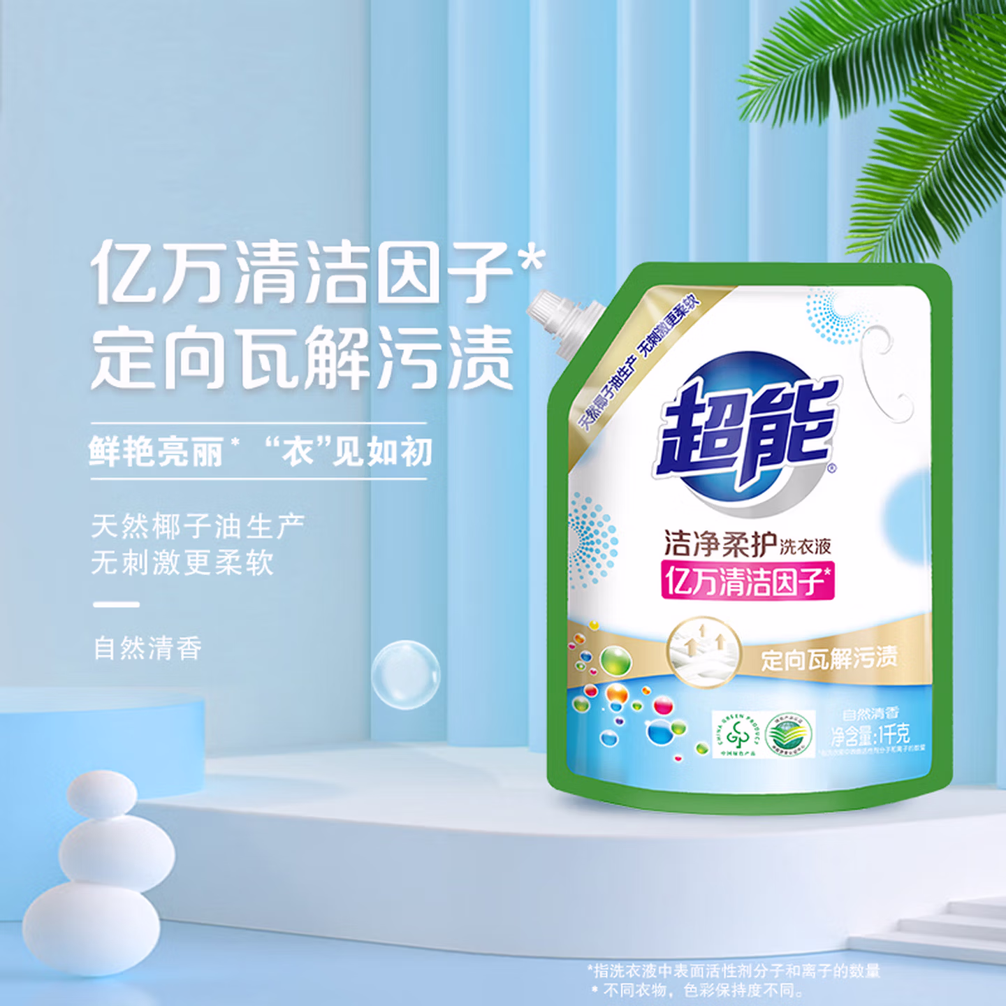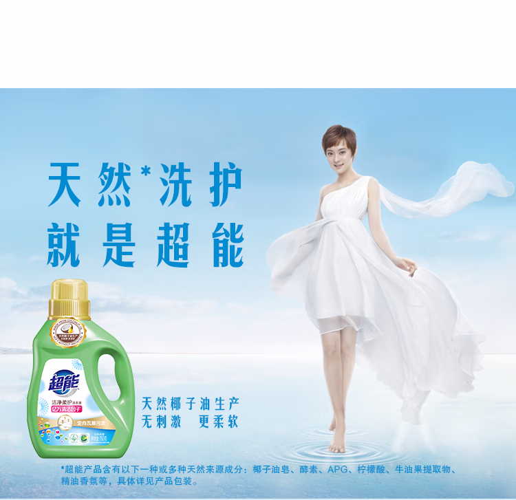 超能 洁净柔护(鲜艳亮丽)洗衣液 橙花茉莉香 1kg*1袋 15分钟快洗