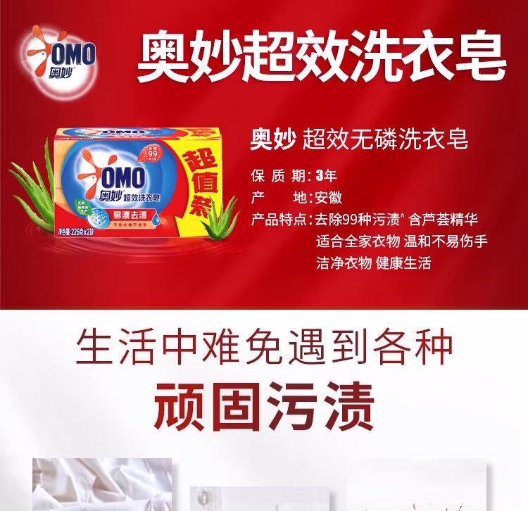 > 奥妙超效洗衣皂易漂去渍透明皂肥皂温和不伤衣不伤手耐用家庭装 【易漂去渍】洗衣皂226g*12块