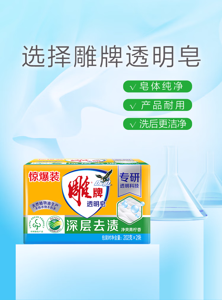 > 雕牌肥皂洗衣皂实惠装家用透明皂内衣皂洗衣肥皂去污 【2块增白皂】232g*2块*1组