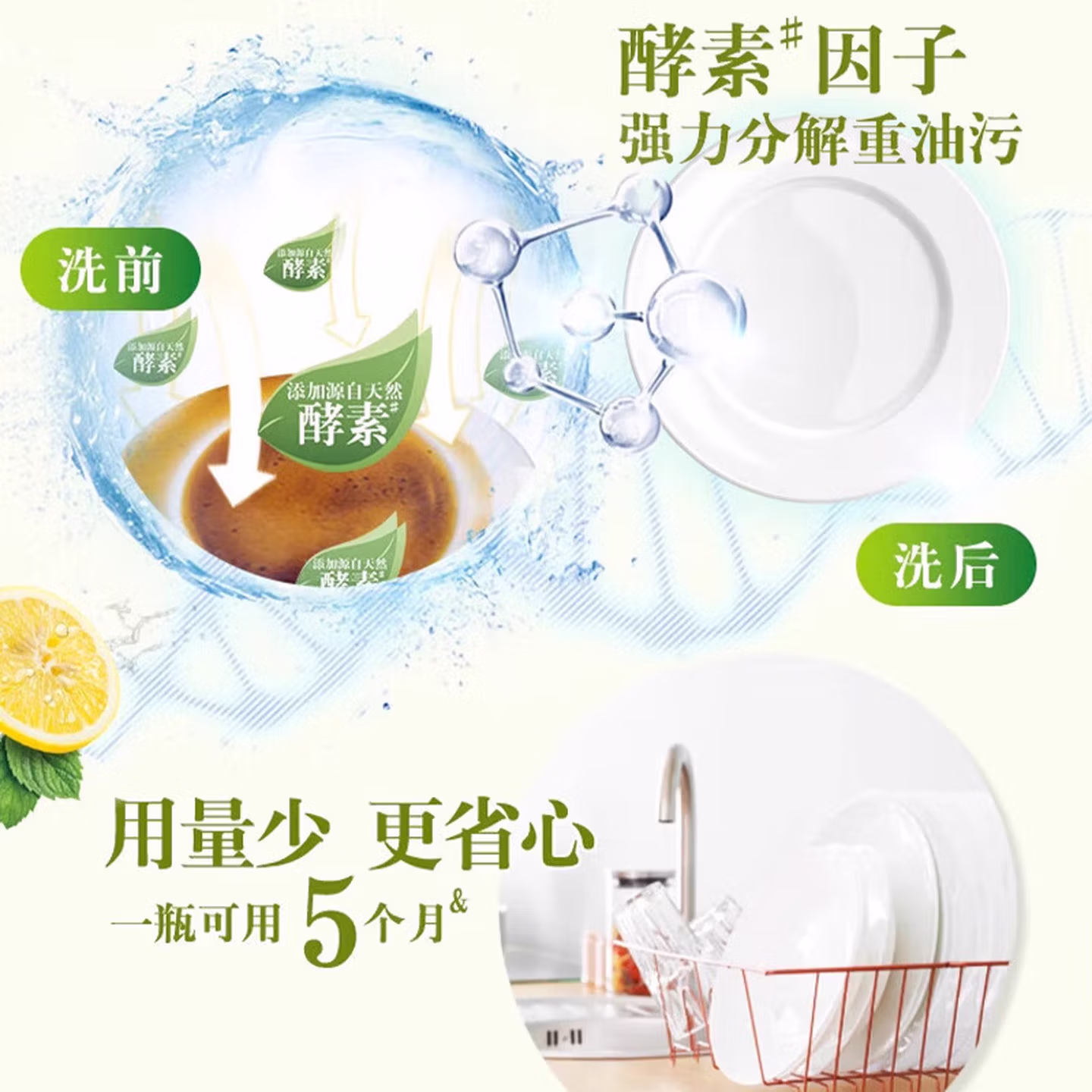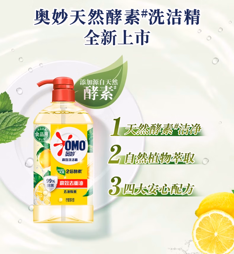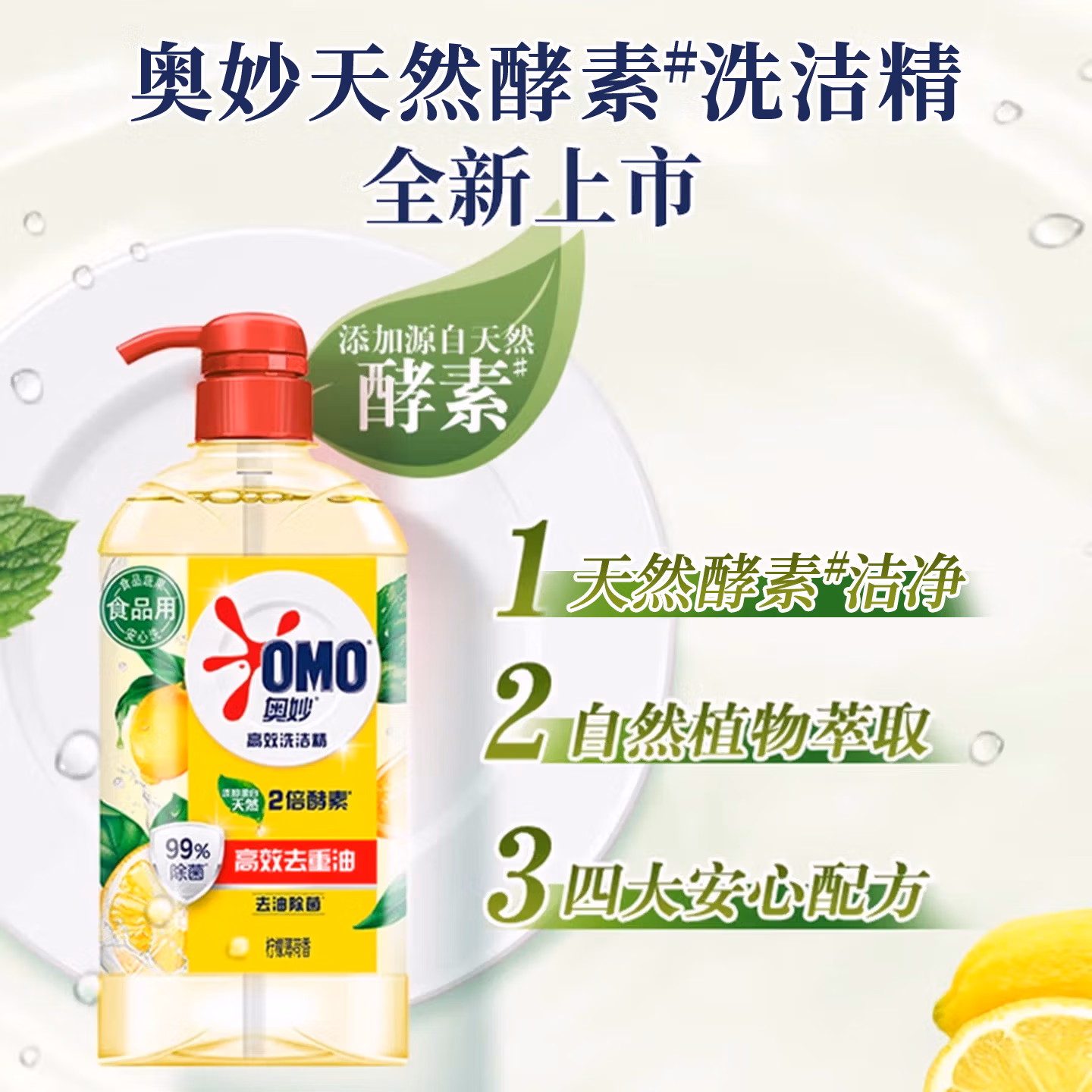 奥妙洗洁精高效去油除菌食品级酵素洁净果蔬餐具安心洗 【实惠两瓶】柠檬薄荷1.08kg*2