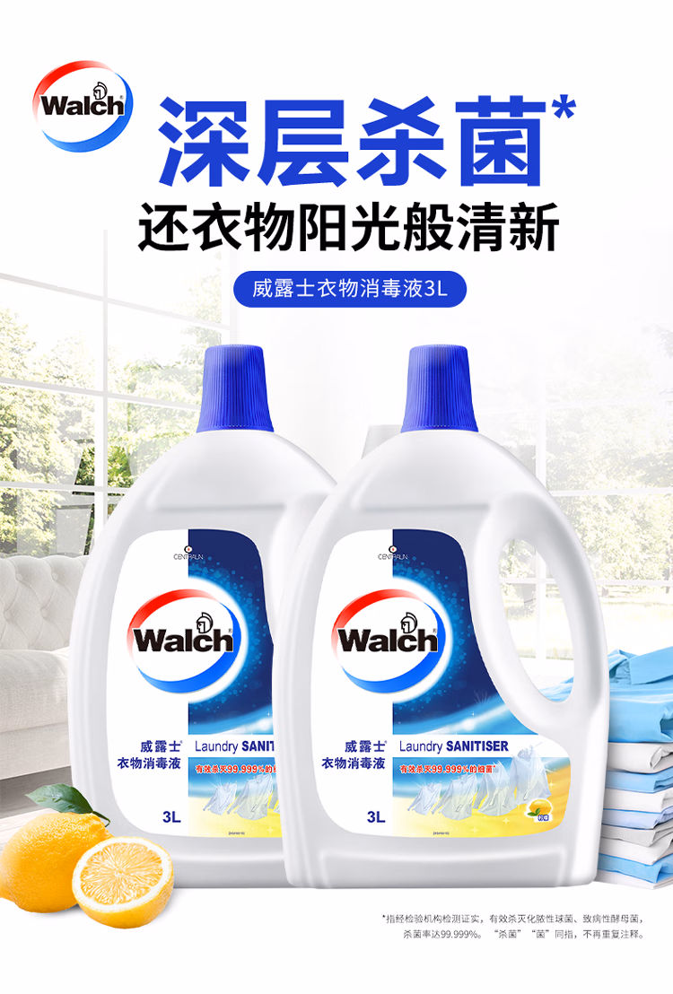 > 威露士衣物消毒液套装6L(柠檬3L*2)除菌剂 除螨杀菌99.999%