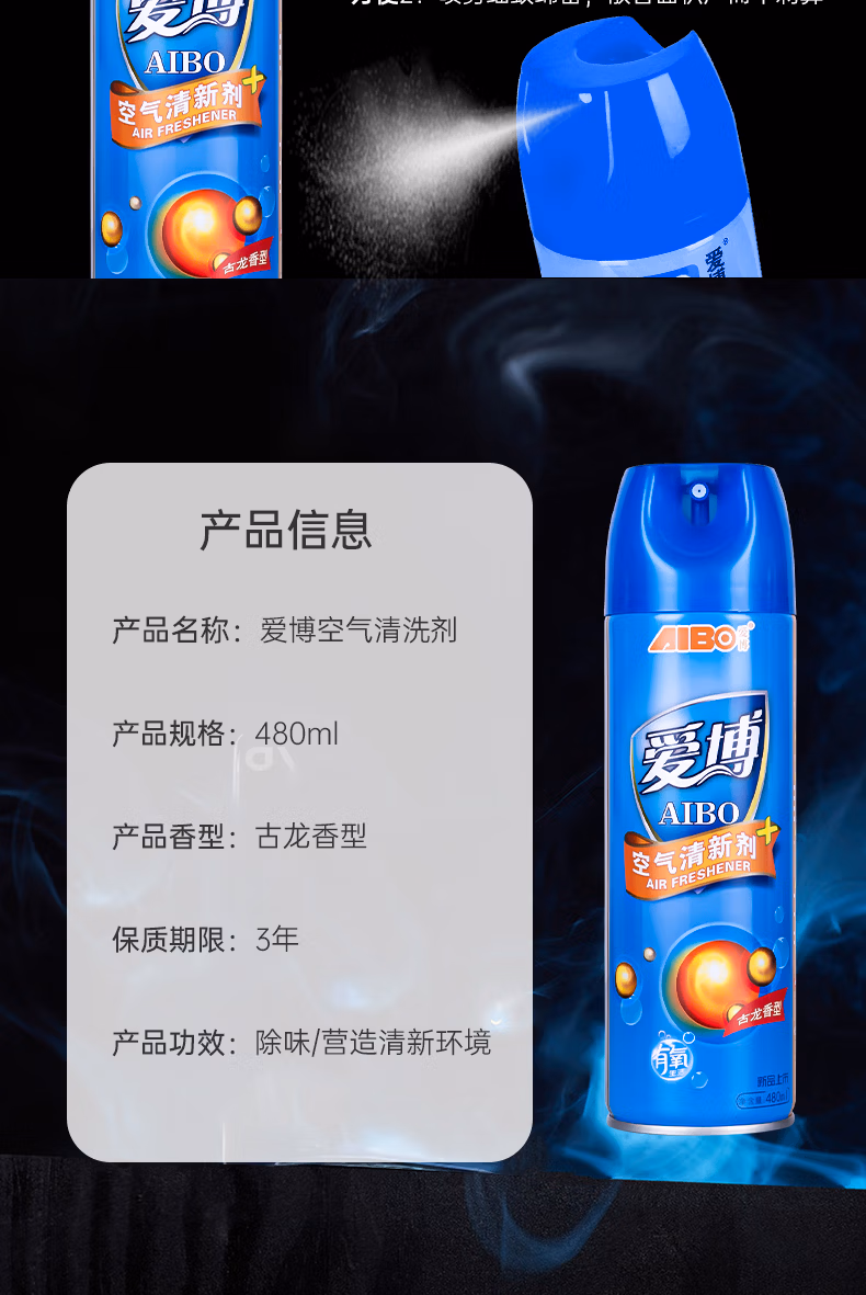 > 爱博空气清新剂茉莉花香480ml 除臭喷雾室内除异味除味厕所除臭香薰