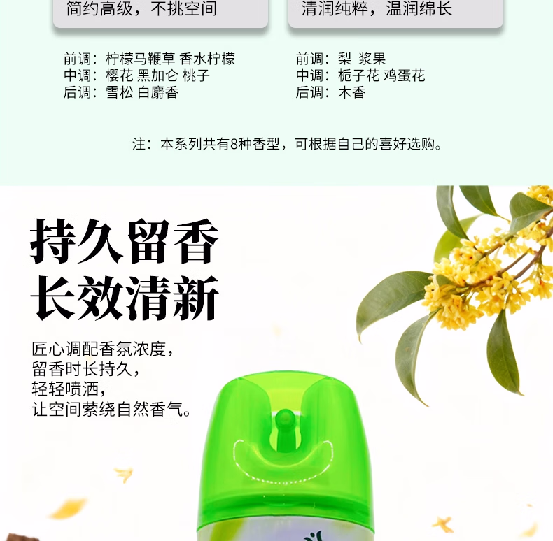 奥之宝空气清新剂栀子花450m*2除臭喷雾除异味室内卧室厕所卫生间香薰