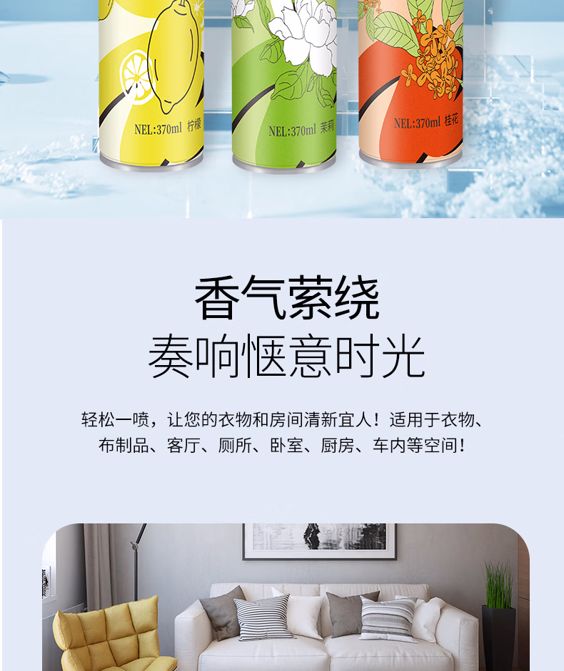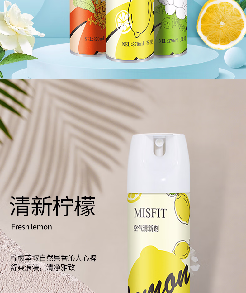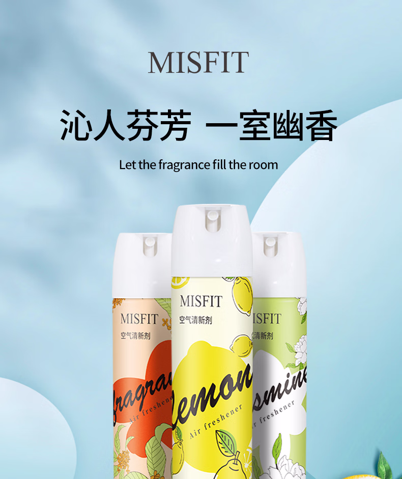 > MISFIT空气清新剂370ml*3瓶组合喷雾除臭持久留香卧室车用家用客厅厕所