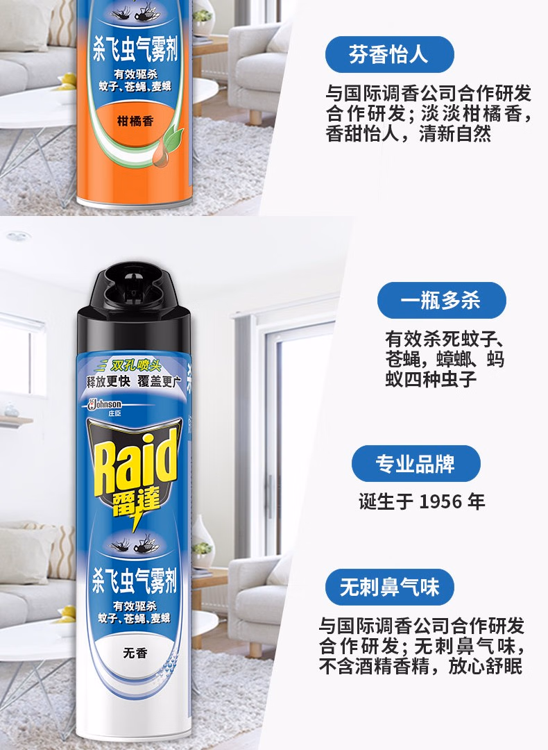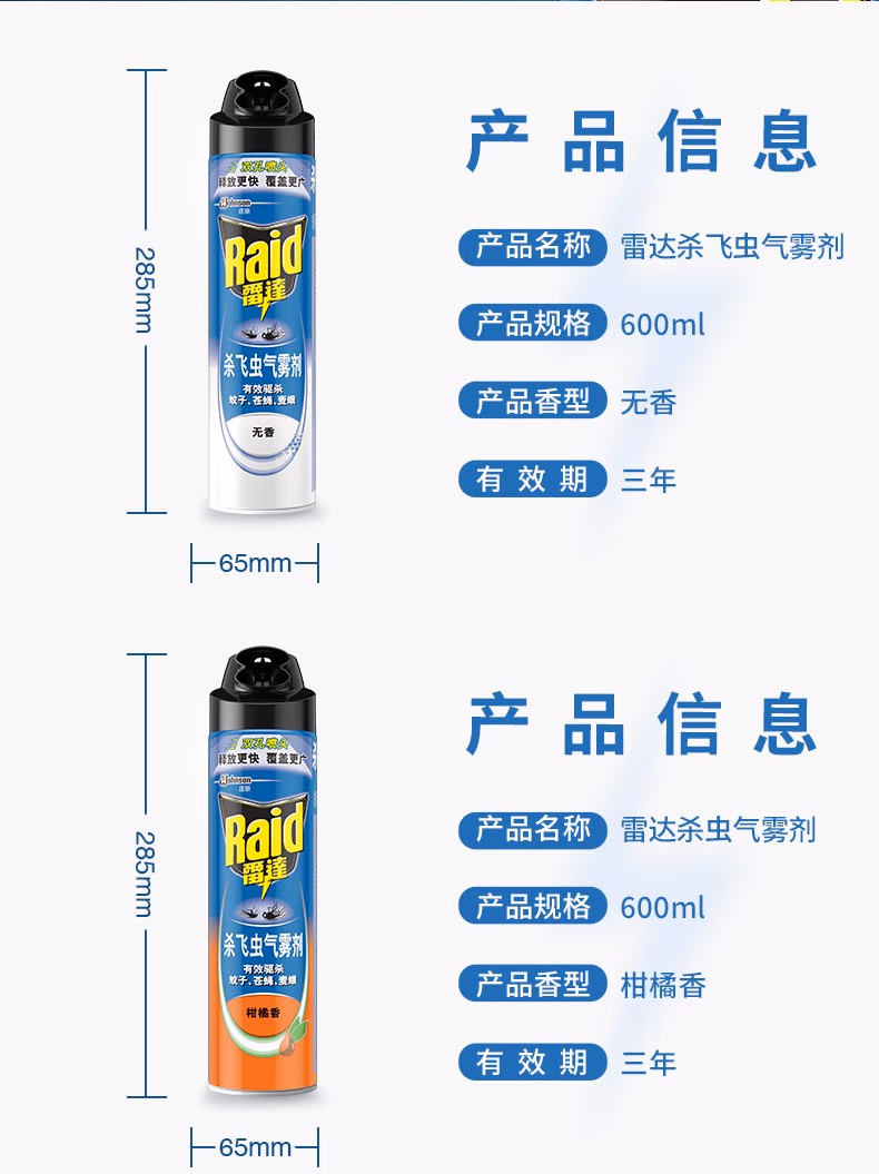 > 雷达杀飞虫气雾剂600ml驱杀蚊子苍蝇蟑螂蚂蚁杀虫水除虫剂杀虫剂驱蚊双控喷头喷雾剂喷灌 无香型600ml*4瓶 雷达