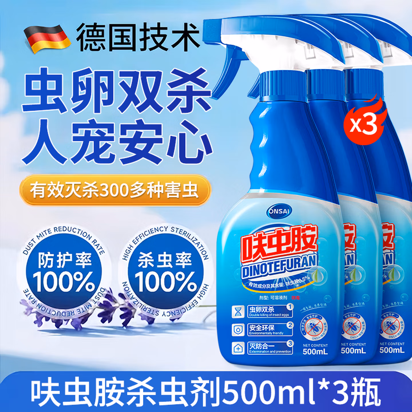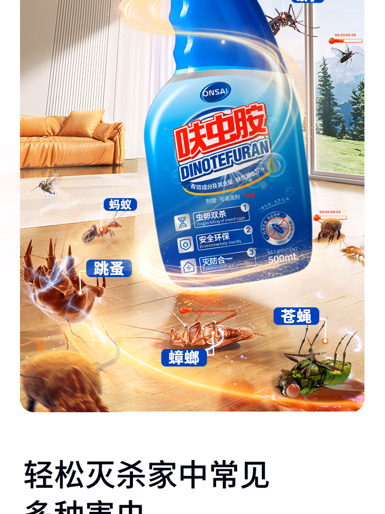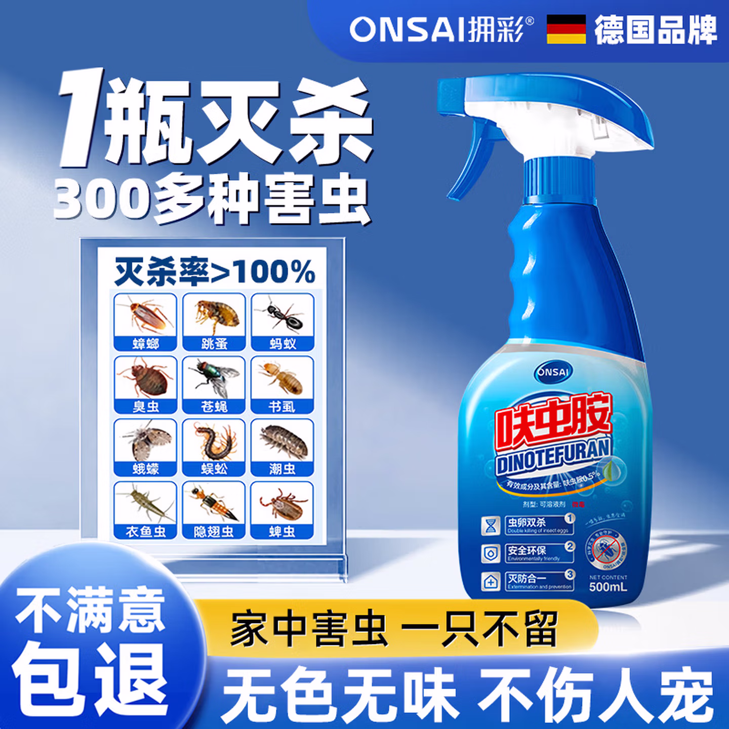 拥彩呋虫胺杀虫剂喷雾500ml 虫卵双杀婴宠可用家用蟑螂蚂蚁跳蚤隐翅虫