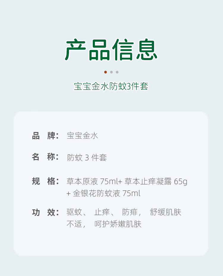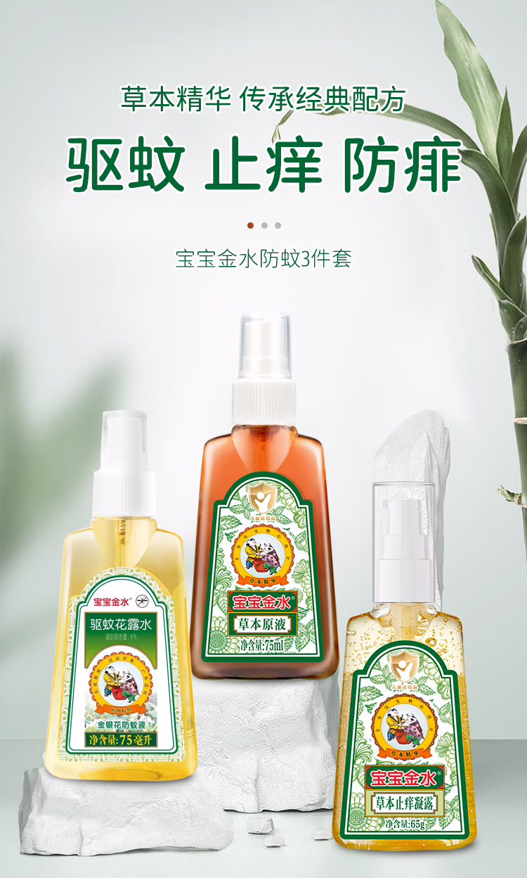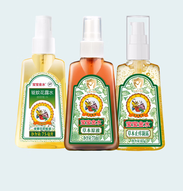 > 宝宝金水防蚊止痒三件套75ml+75ml+65g 花露水防蚊液驱蚊喷雾