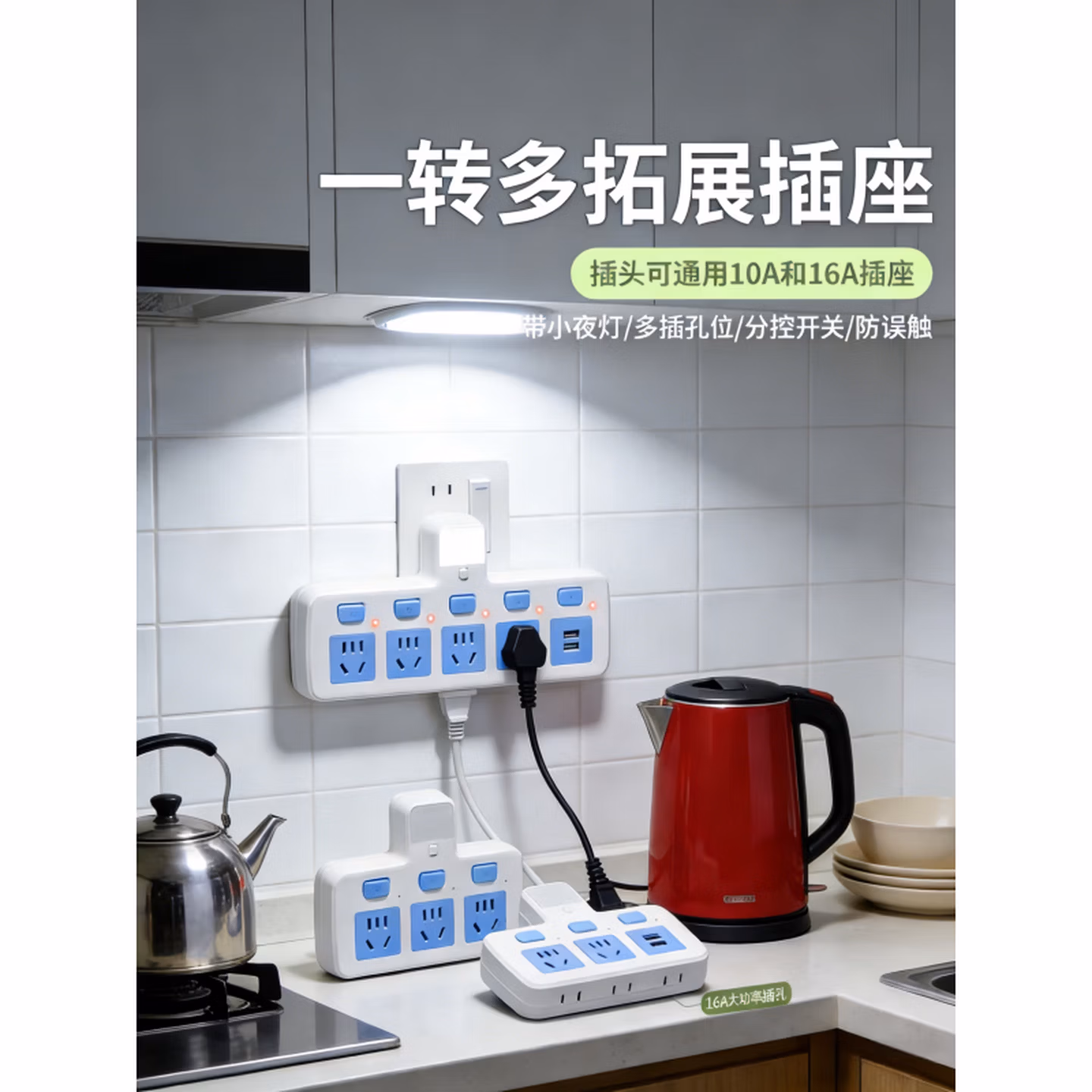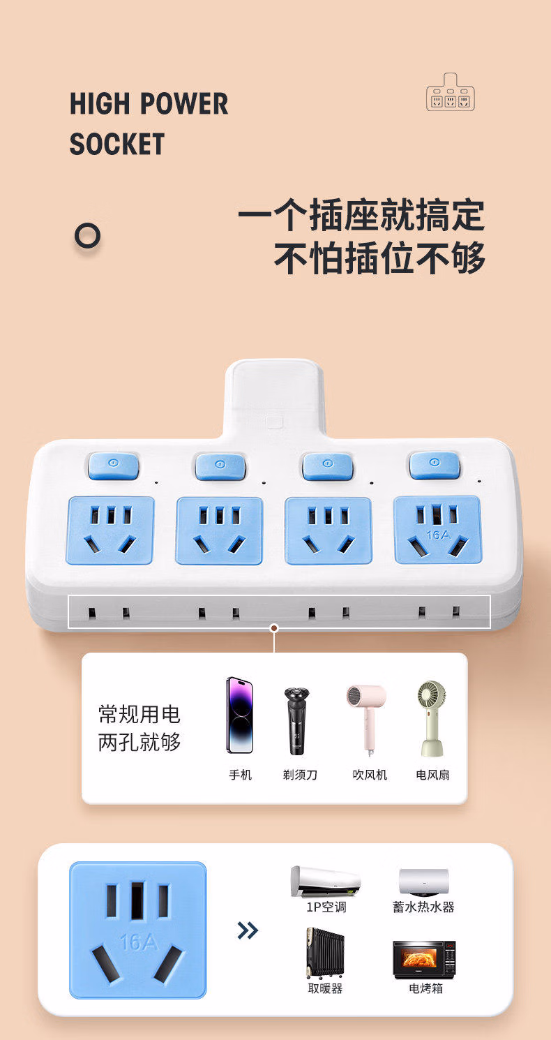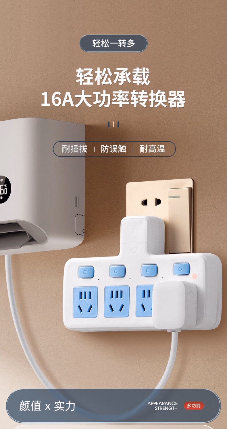 升级边插#cIn#一转四带灯(10A2500瓦)