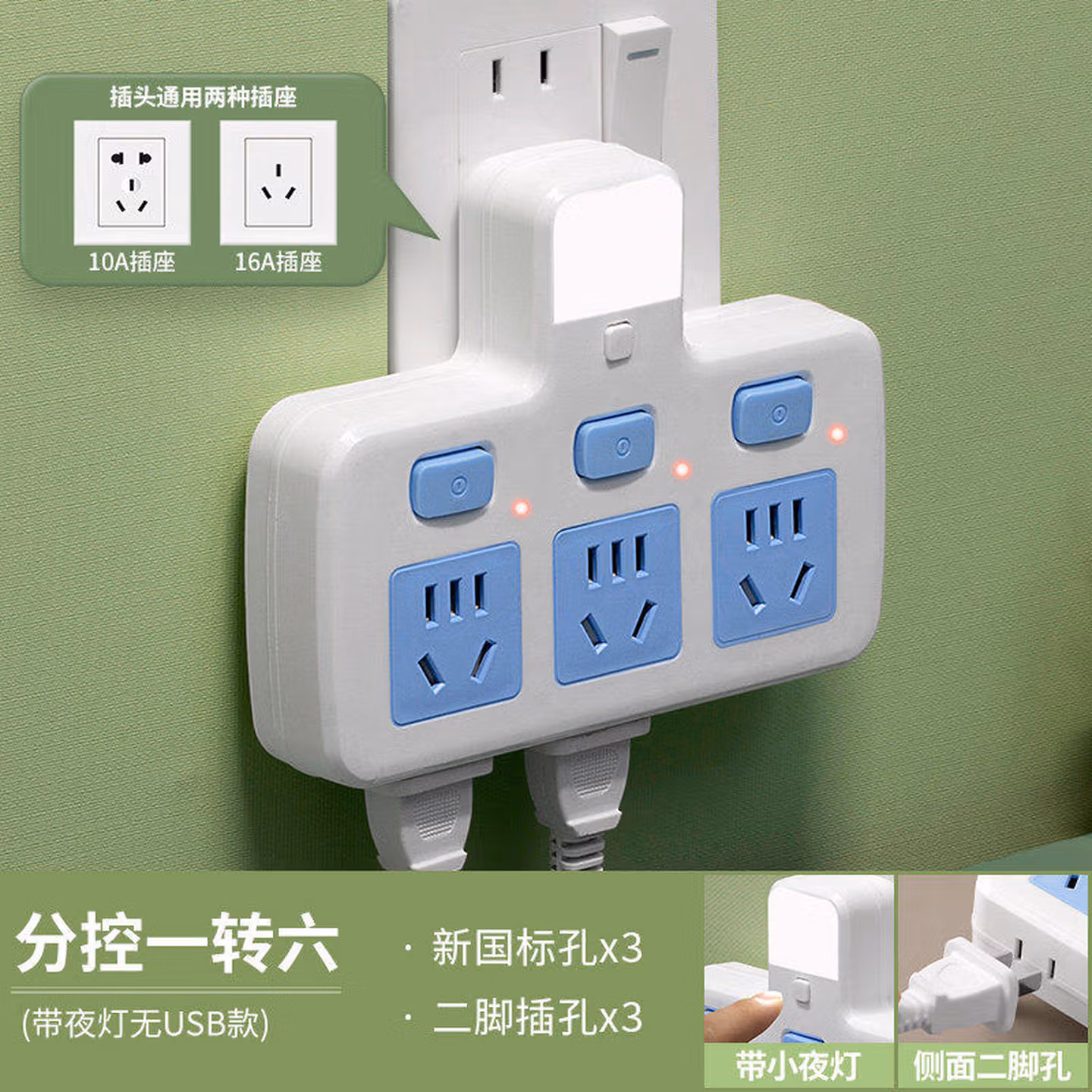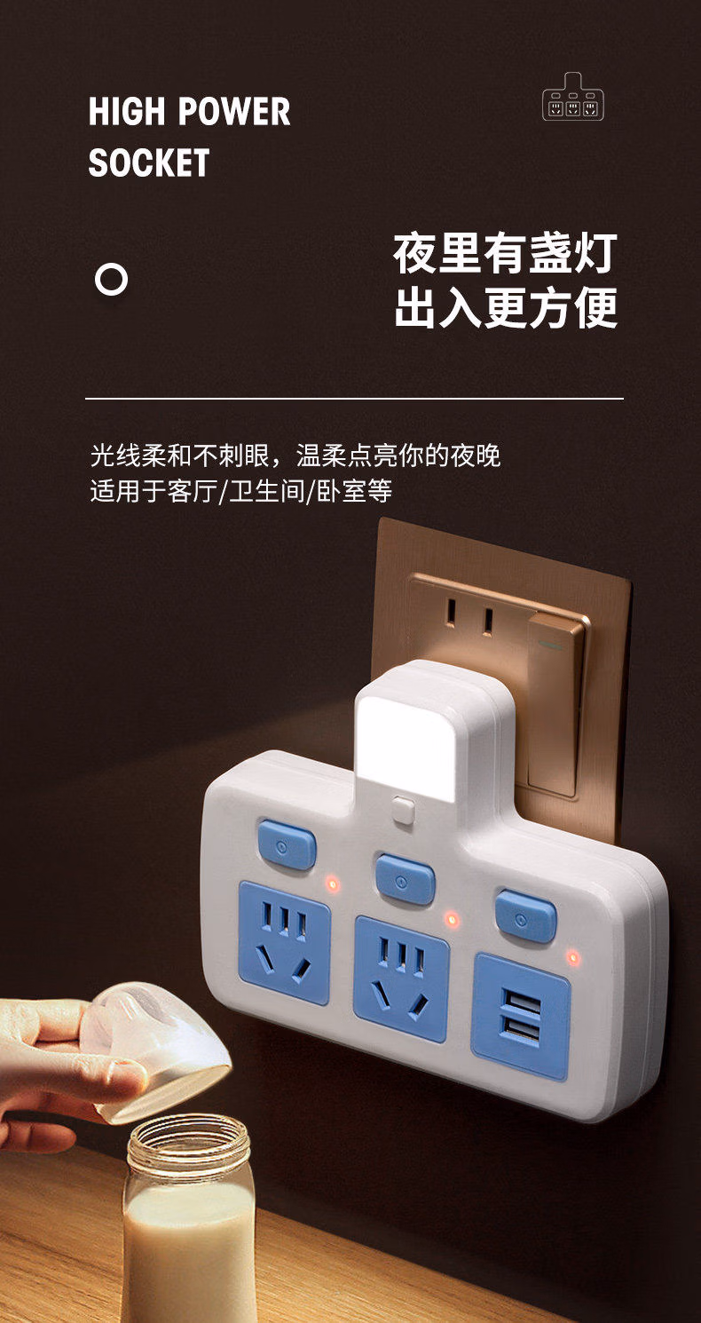 升级边插#cIn#一转二带灯(10A2500瓦)