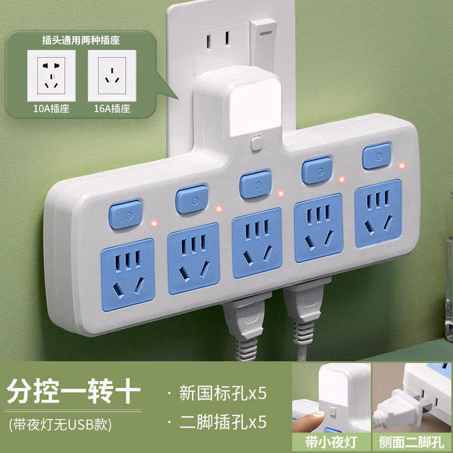 升级边插#cIn#一转五带灯(10A2500瓦)