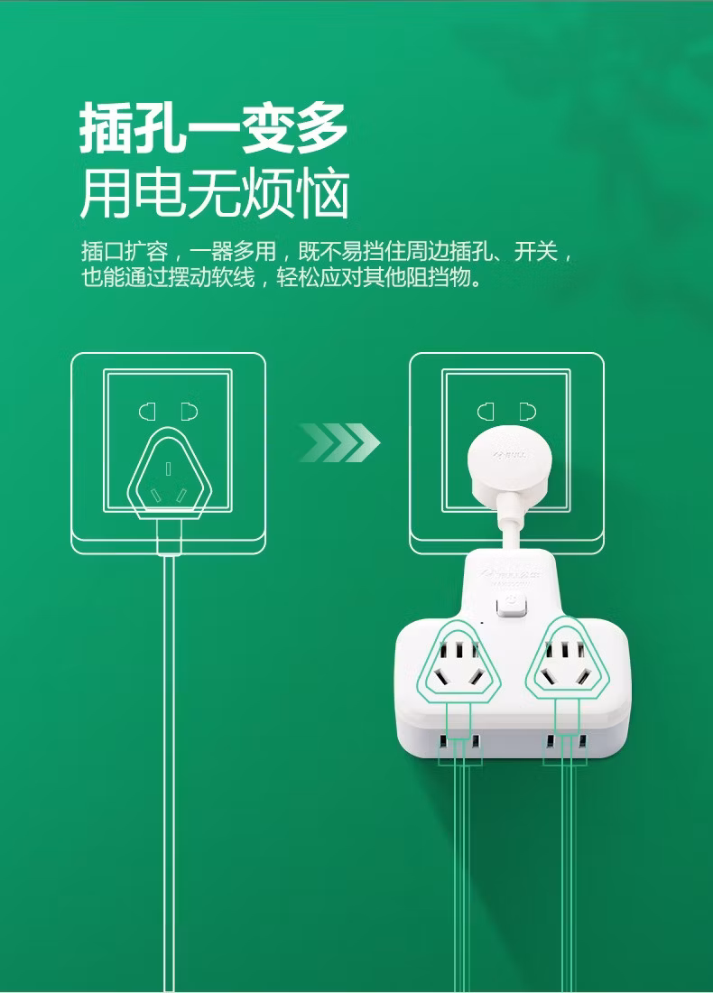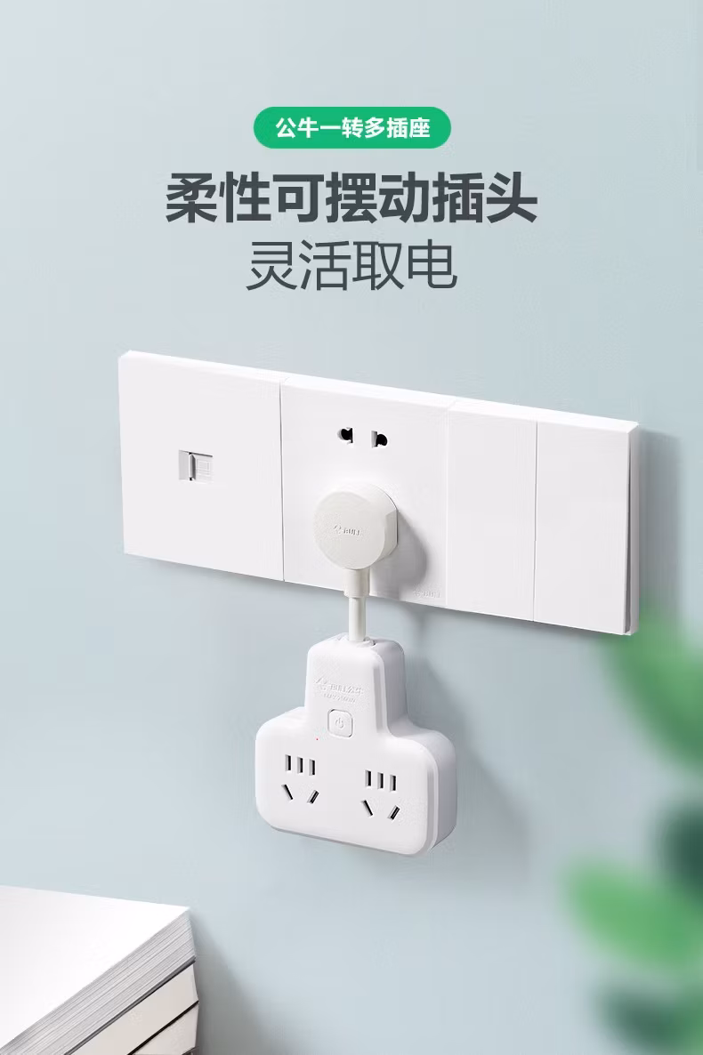 公牛公牛插座转换插头分插器多头插座转换器多孔扩展usb带开关多用功 9722K带侧插一转四总控开关