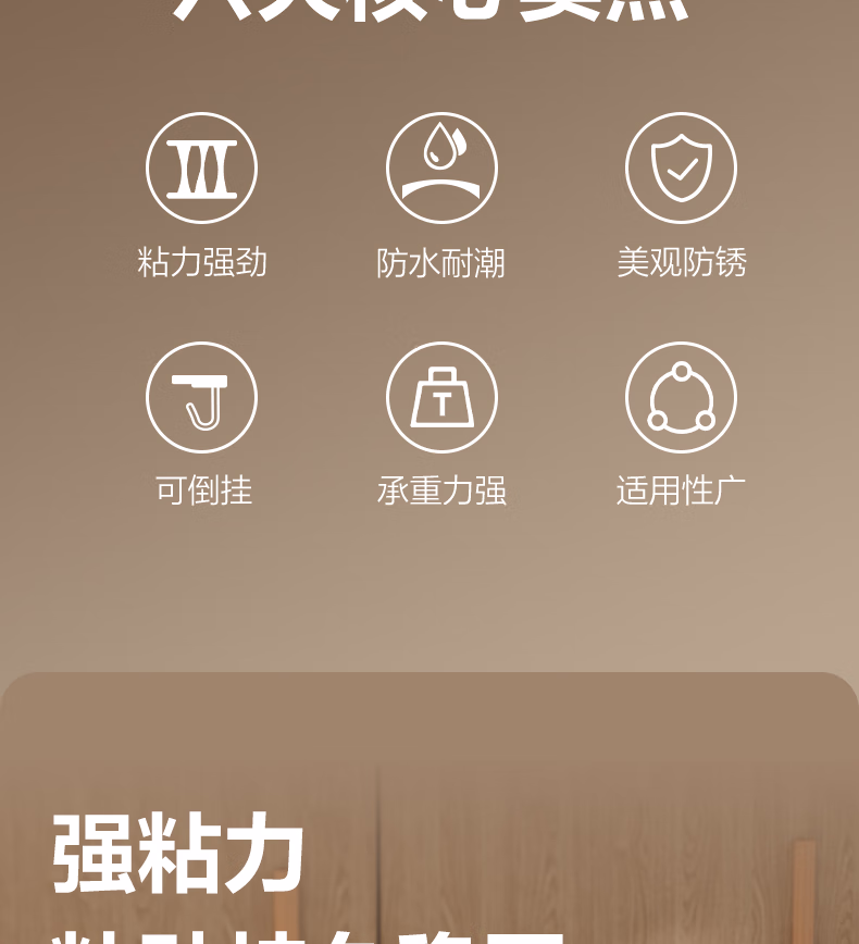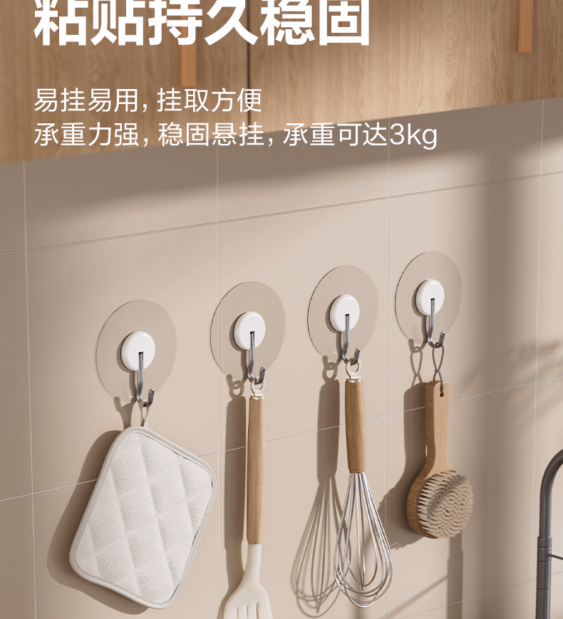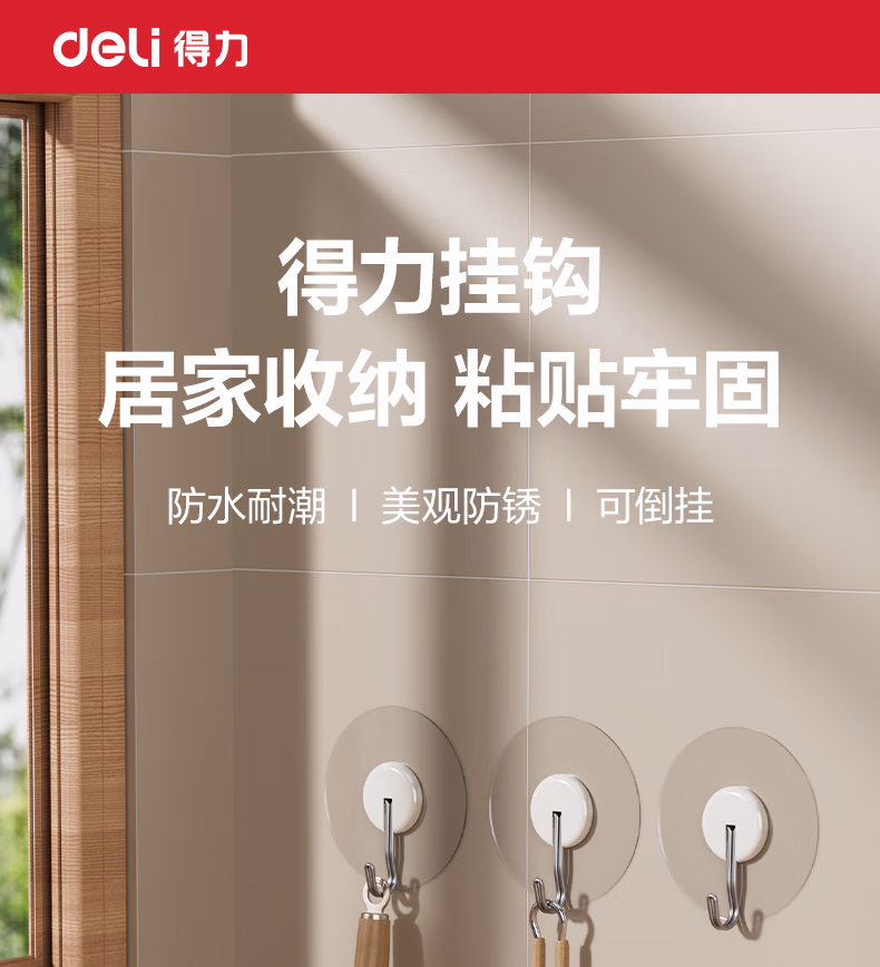 > 得力(deli)强力无痕挂钩 3kg强承重可倒挂 浴室厨房门后粘钩 2只 19374-2