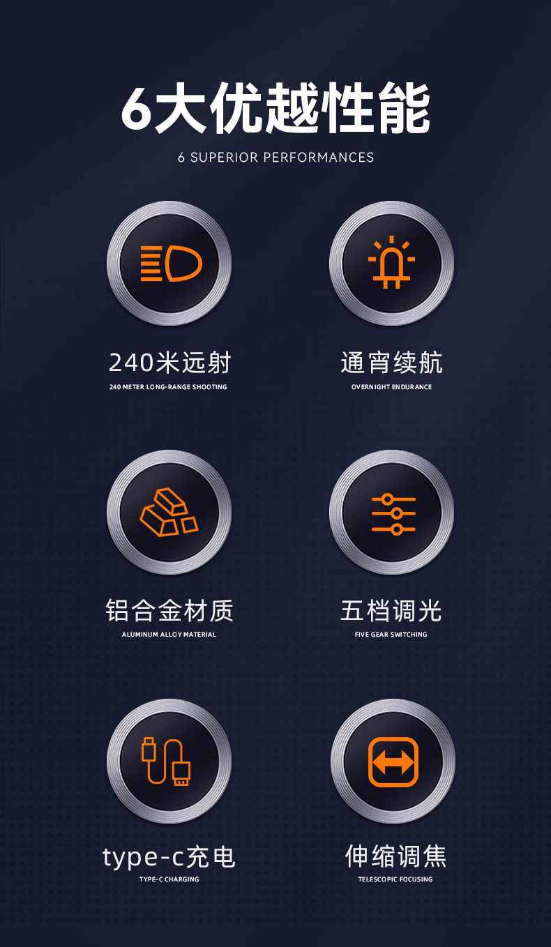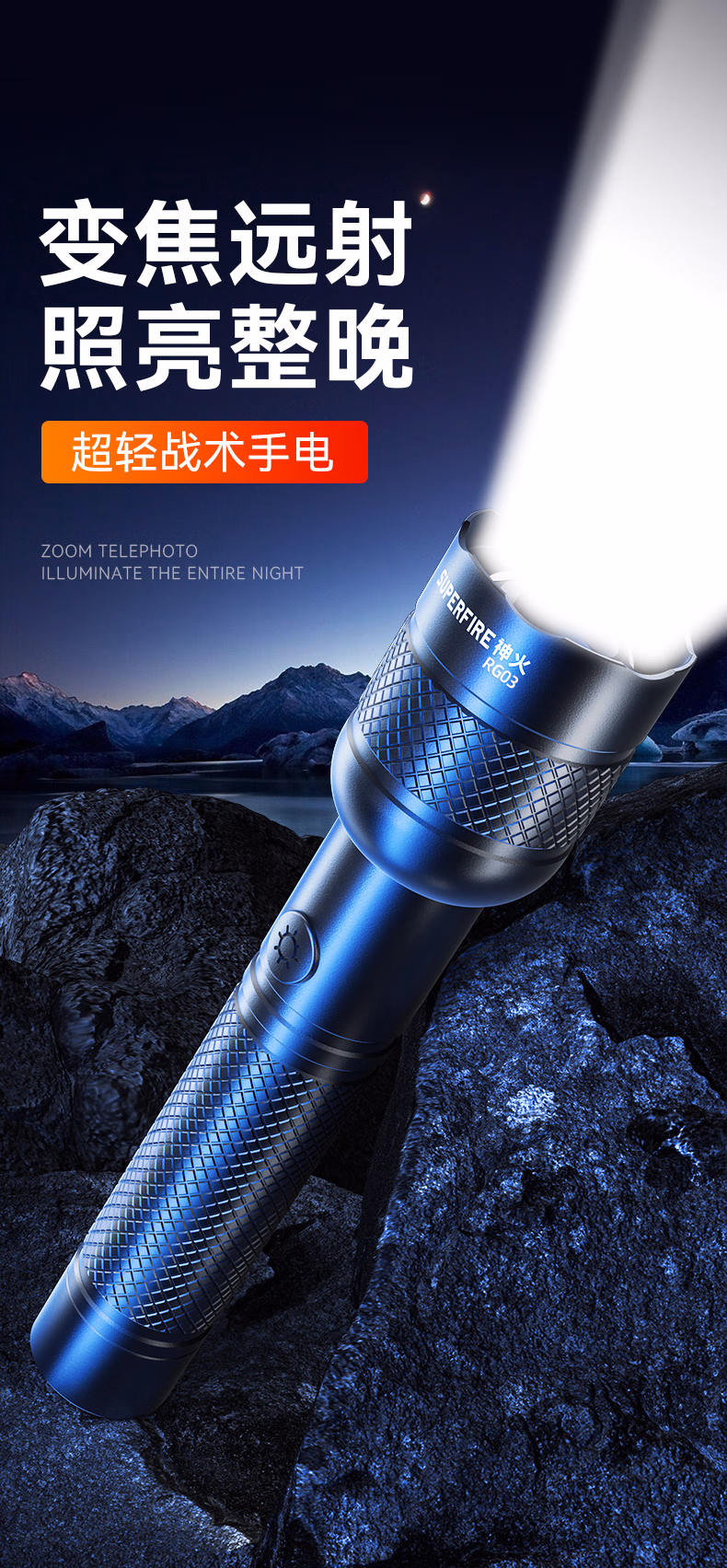 > 神火(SupFire)手电筒强光超亮长续航野外生存变焦军小型便携家专用穿天炮应急灯