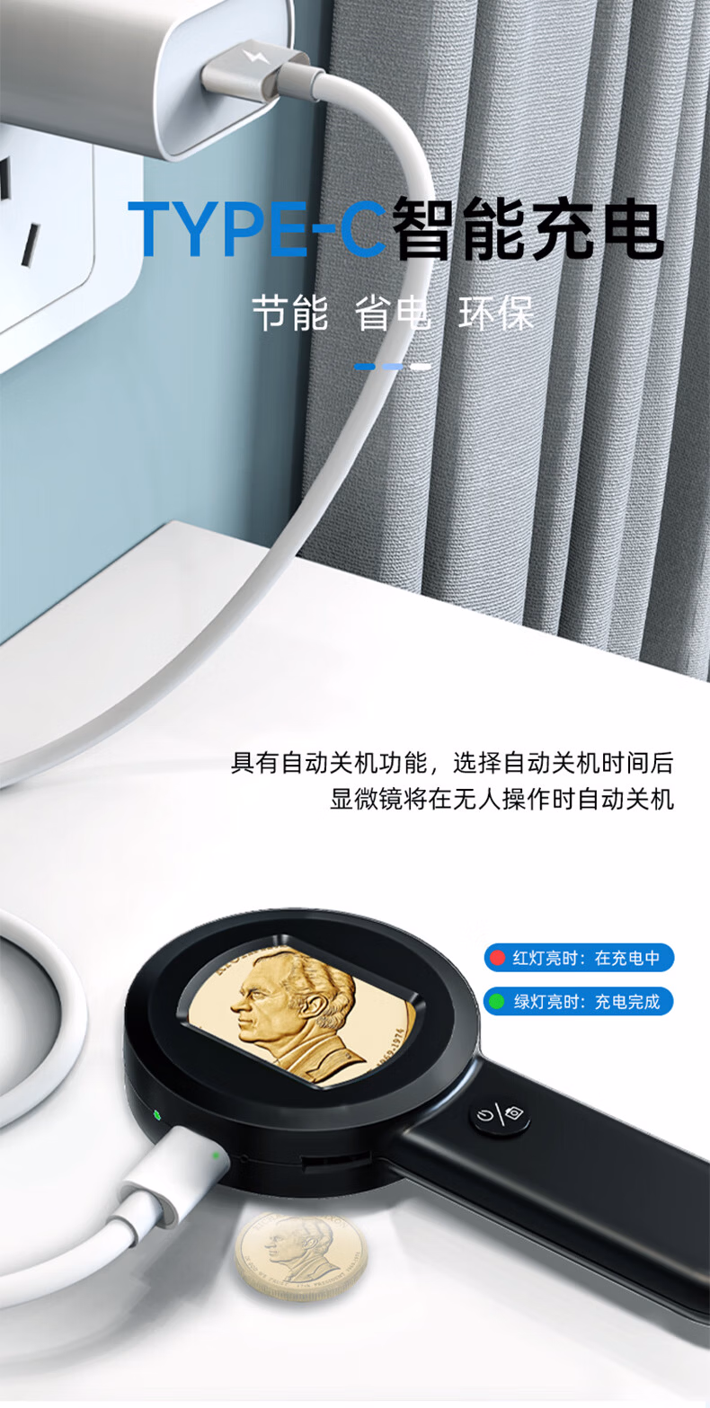 > MIXOUT电子放大镜鉴定便携高倍高清可充电带屏放大镜烟酒珠宝古玩维修