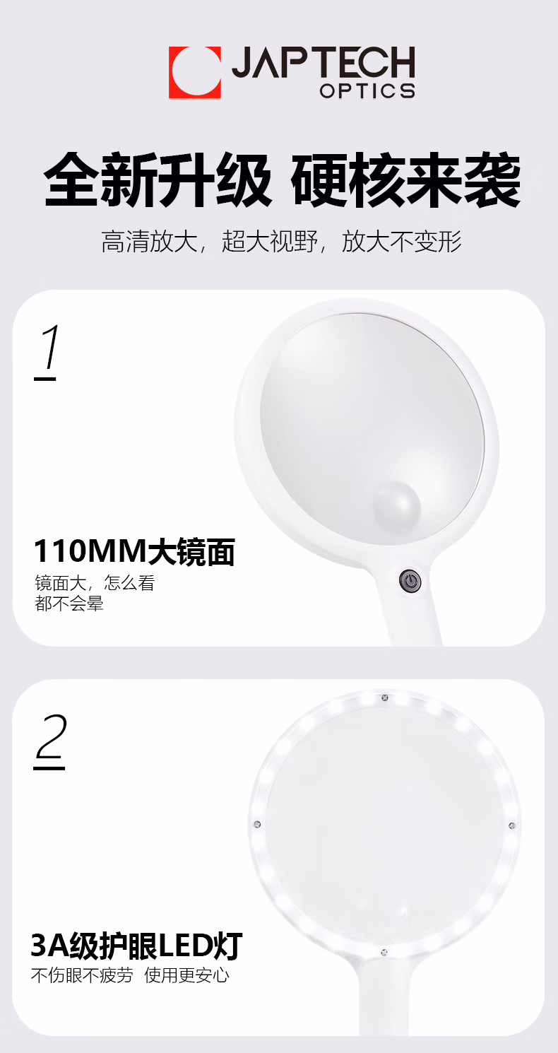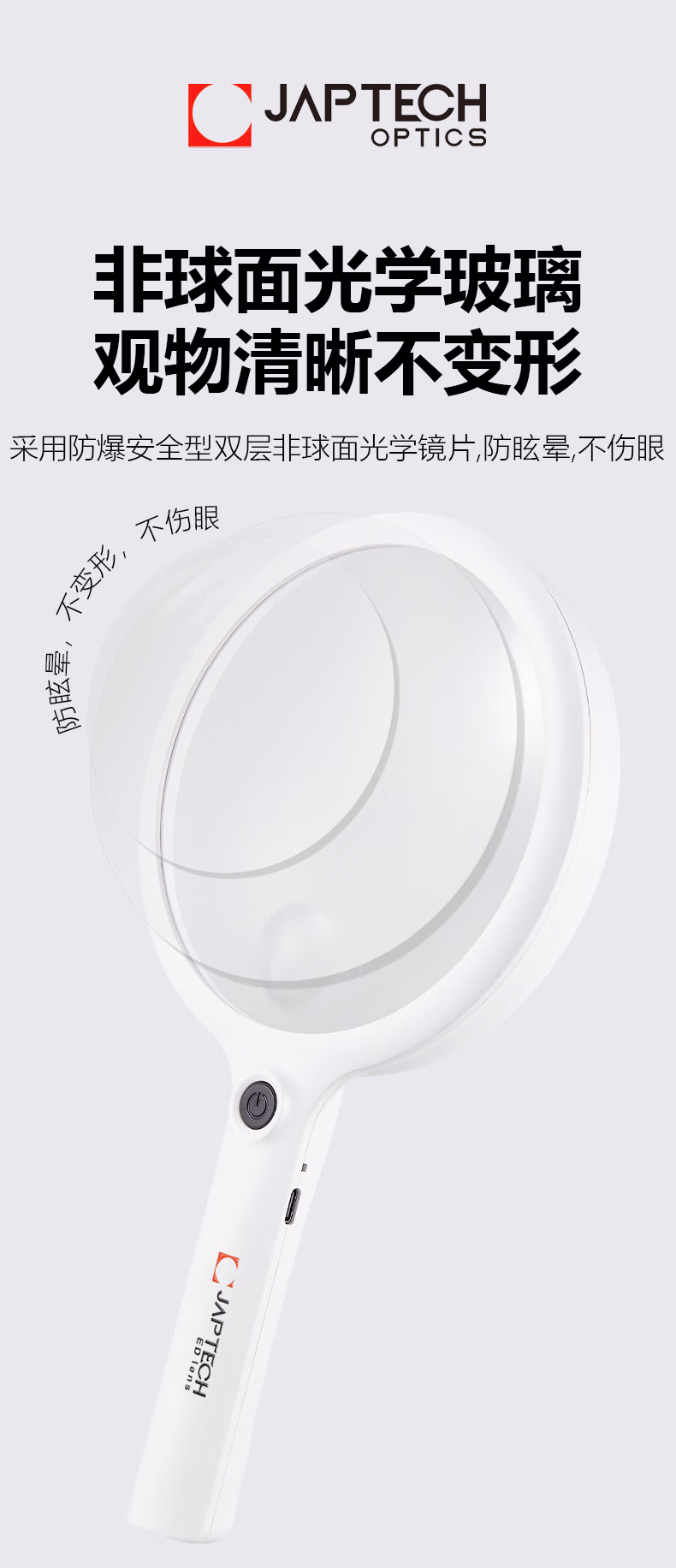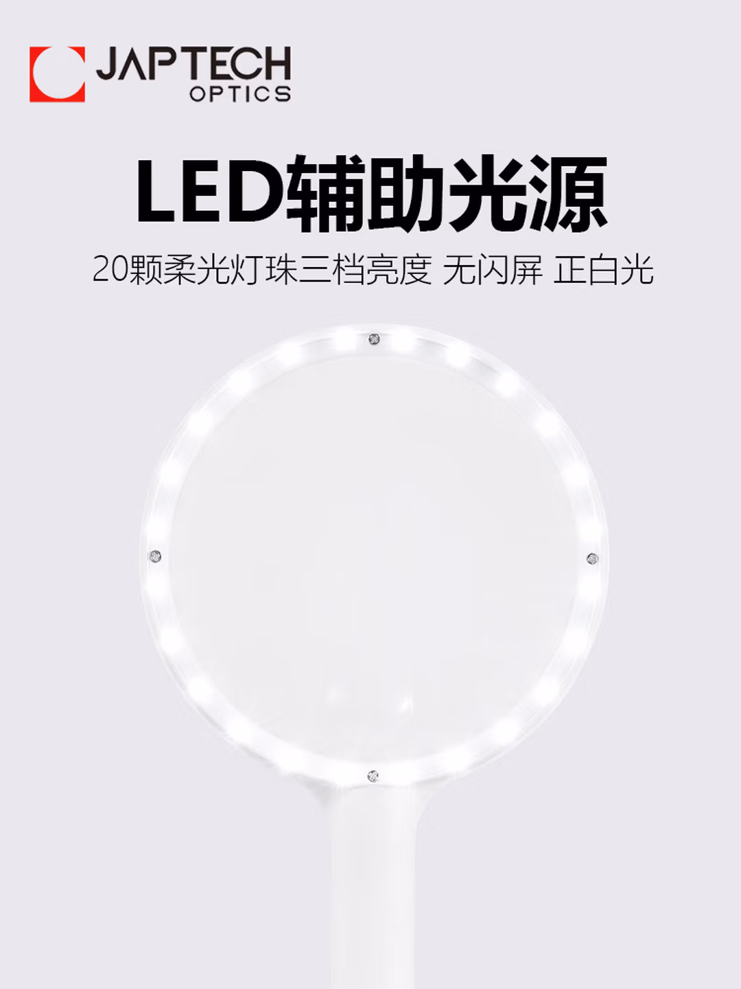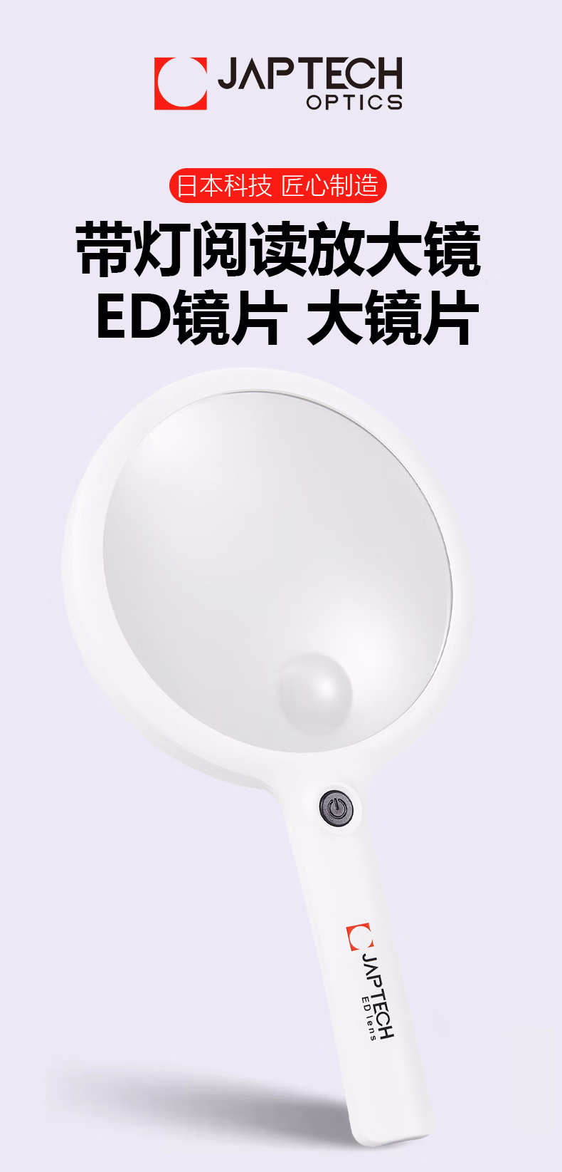 > JAPTECH日本科技非球面ED镜片放大镜高清带LED灯老人手持阅读维修