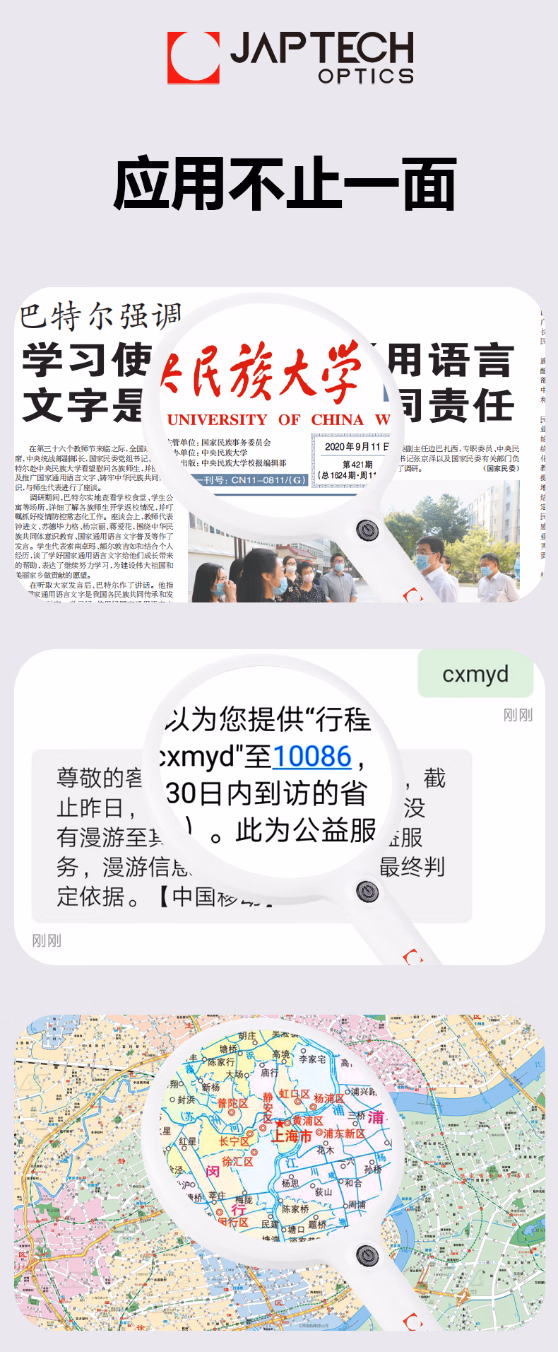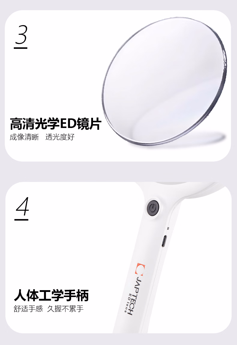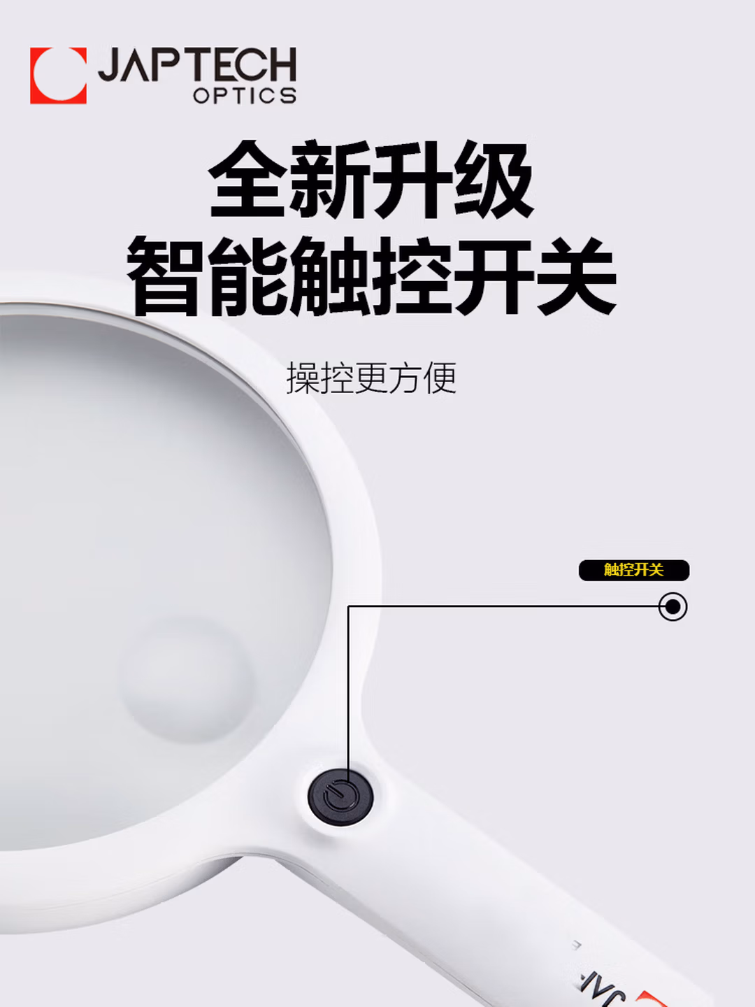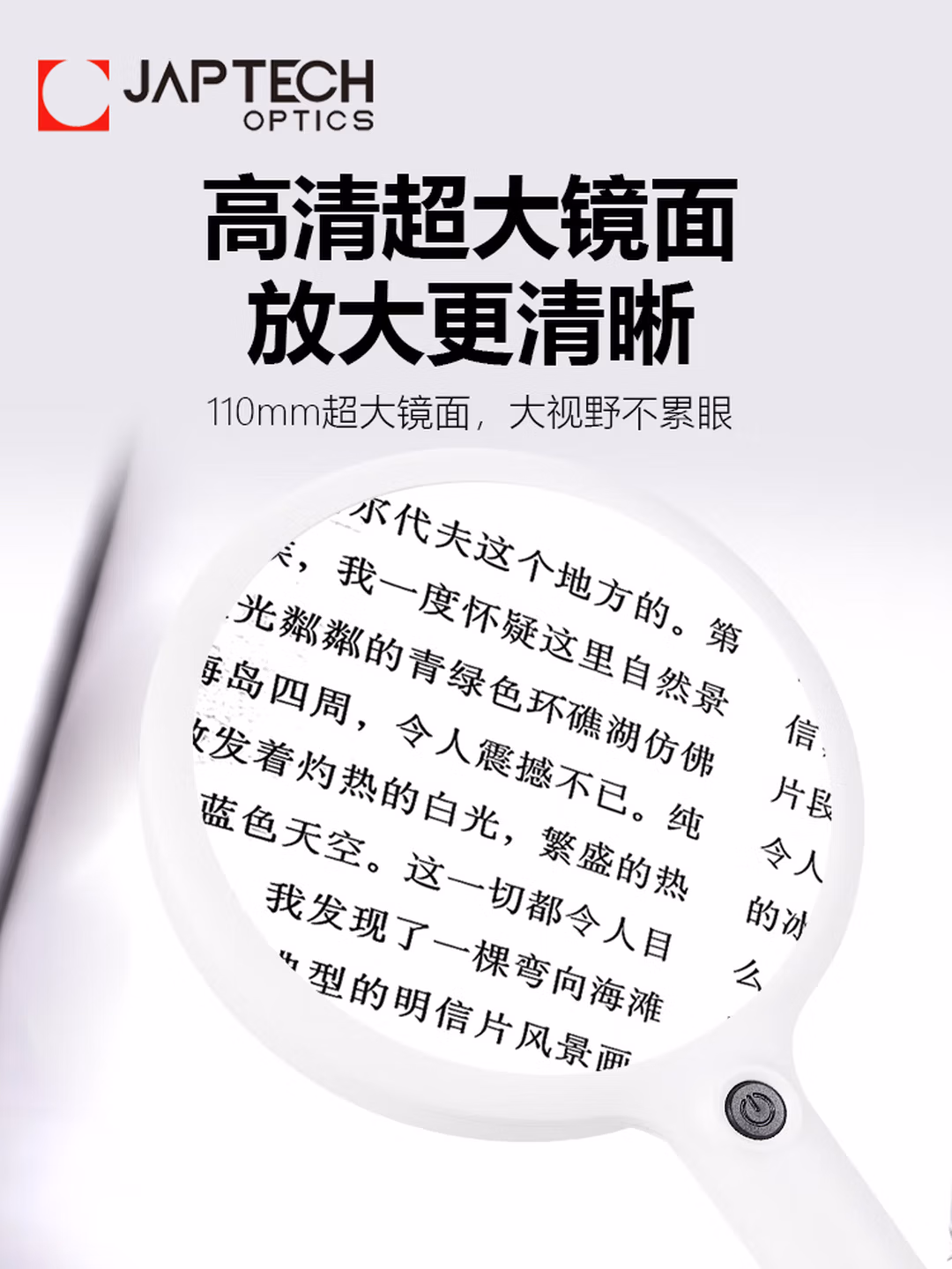 > JAPTECH日本科技非球面ED镜片放大镜高清带LED灯老人手持阅读维修