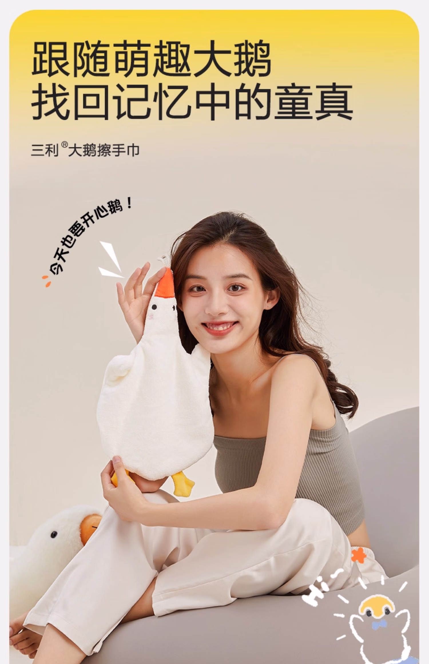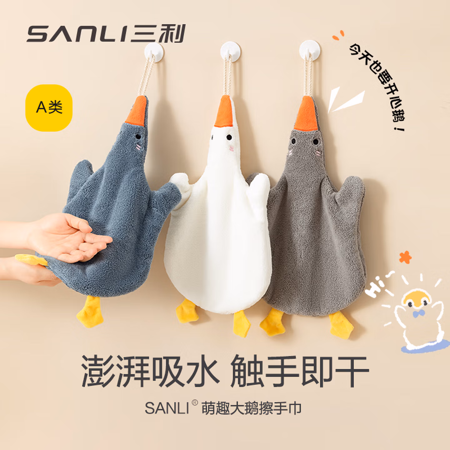 > 三利擦手巾可挂式可爱吸水速干加厚卡通儿童厨房洗手卫生间成人小毛巾 白色 2条