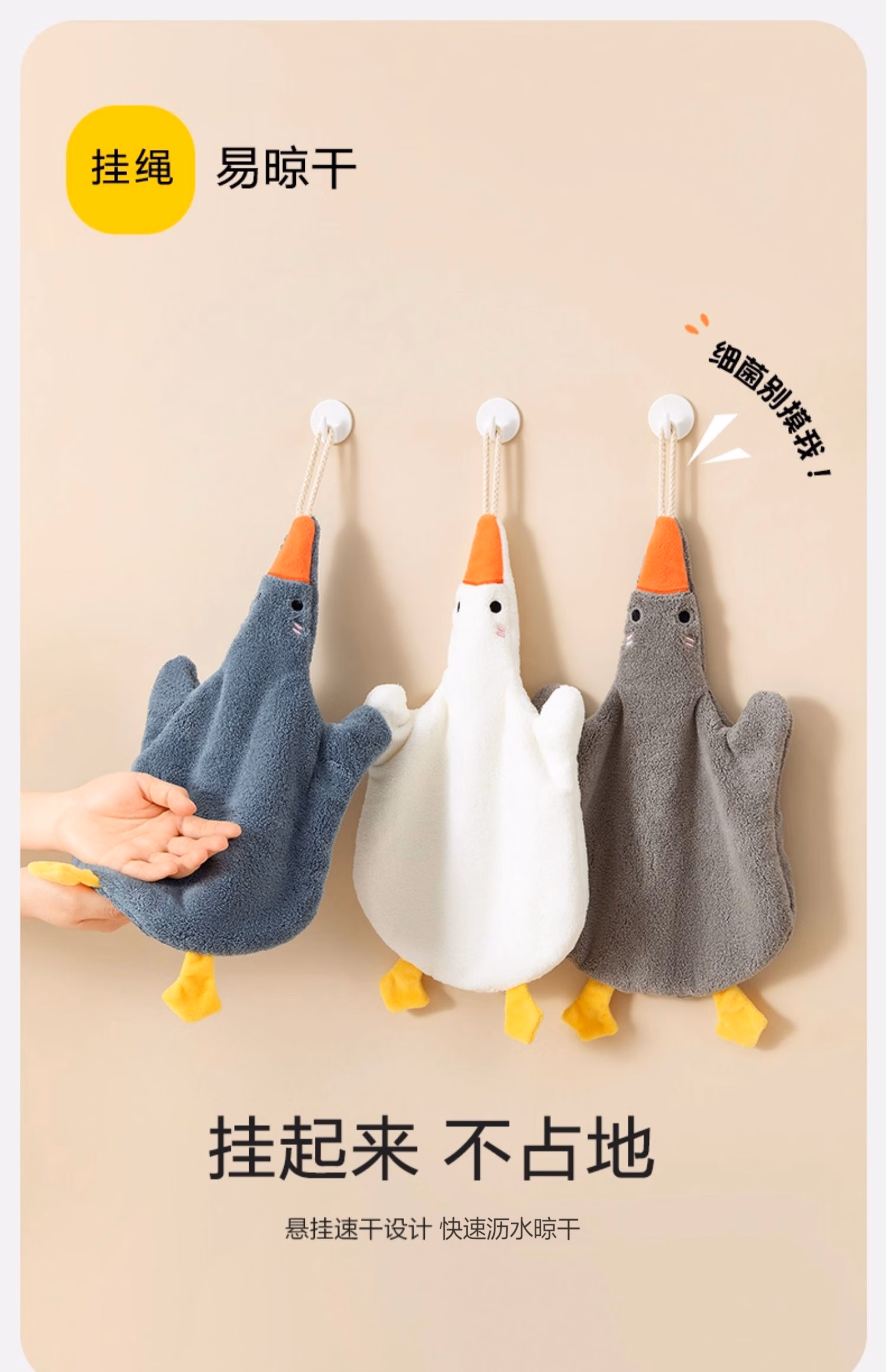 三利擦手巾可挂式可爱吸水速干加厚卡通儿童厨房洗手卫生间成人小毛巾 白色 2条