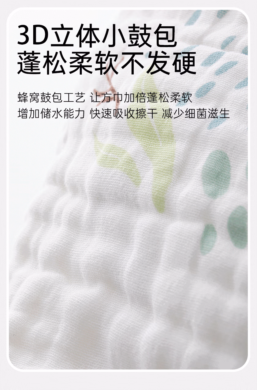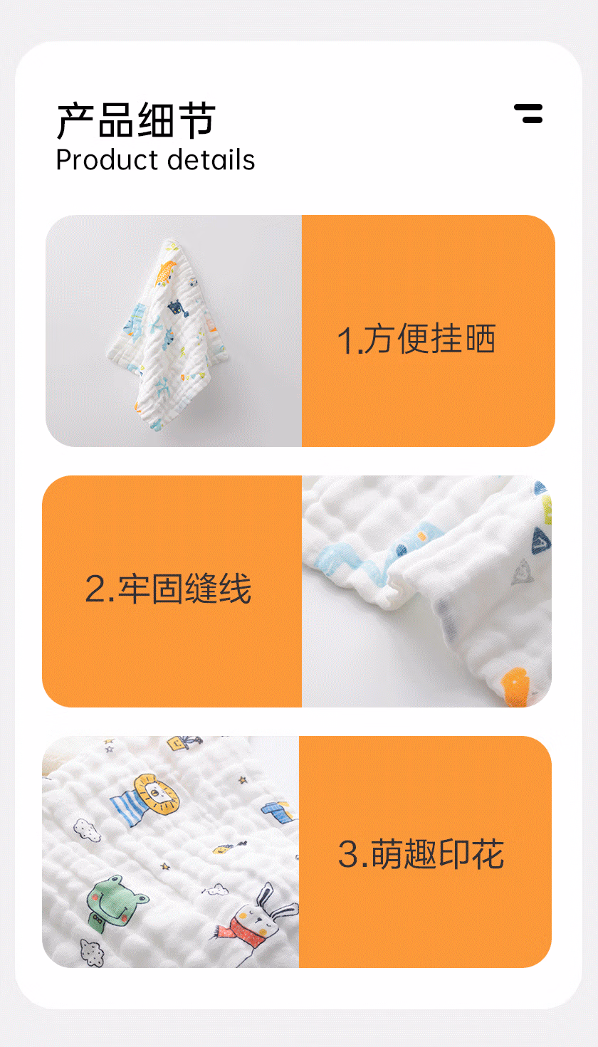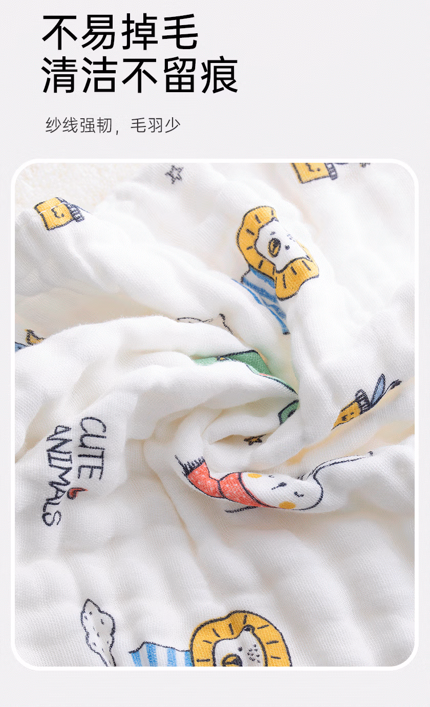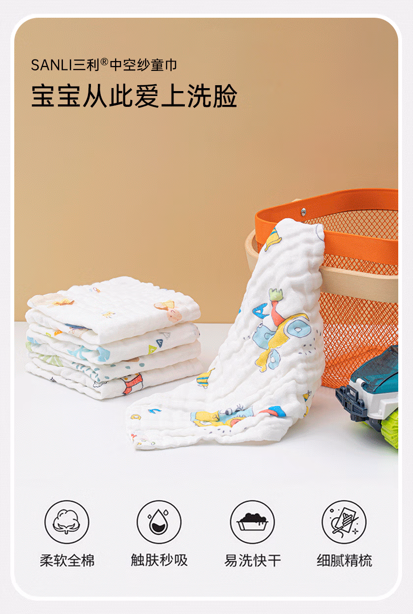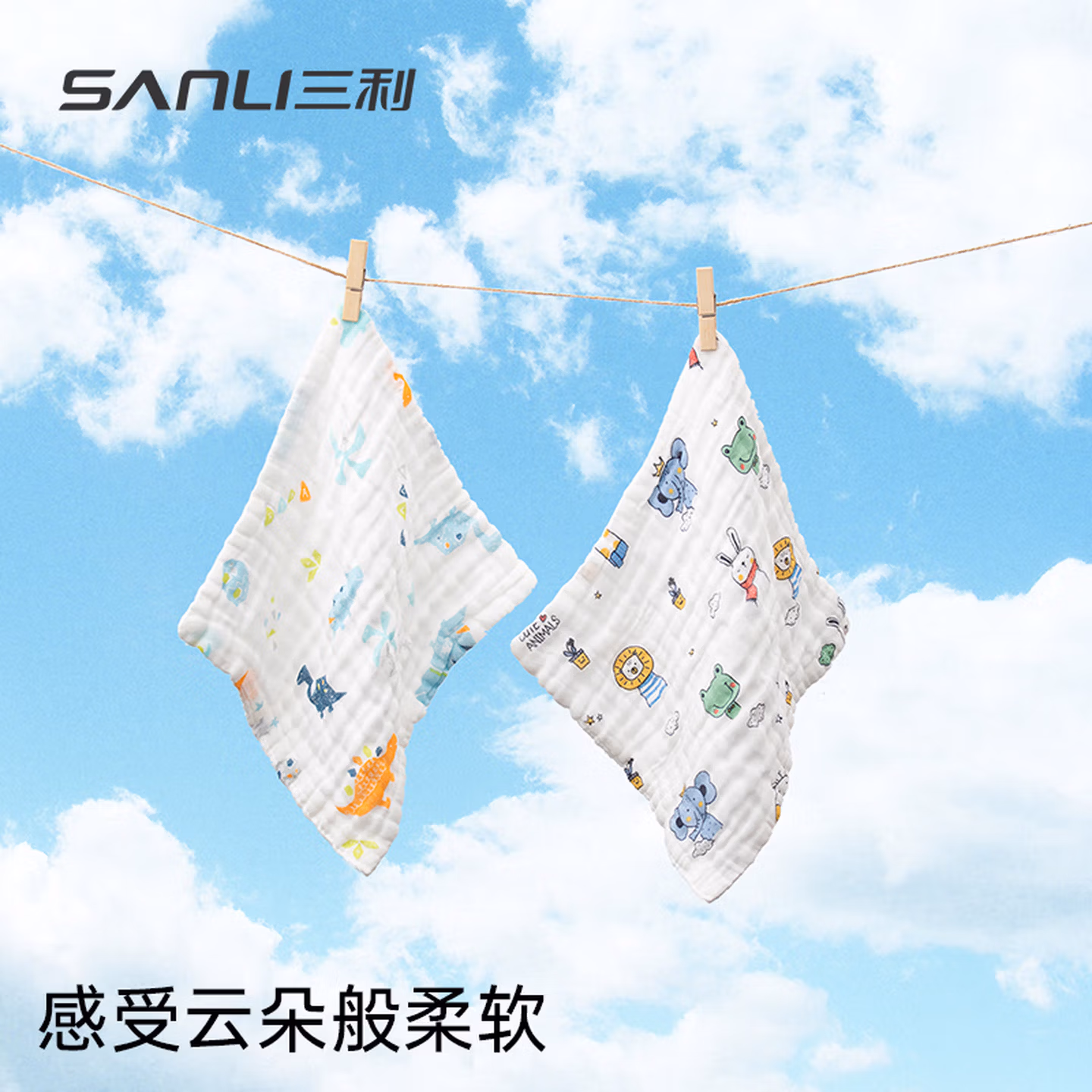 > 三利纯棉4层中空纱布儿童毛巾5条婴幼儿口水巾宝宝可挂洗脸擦手小毛巾