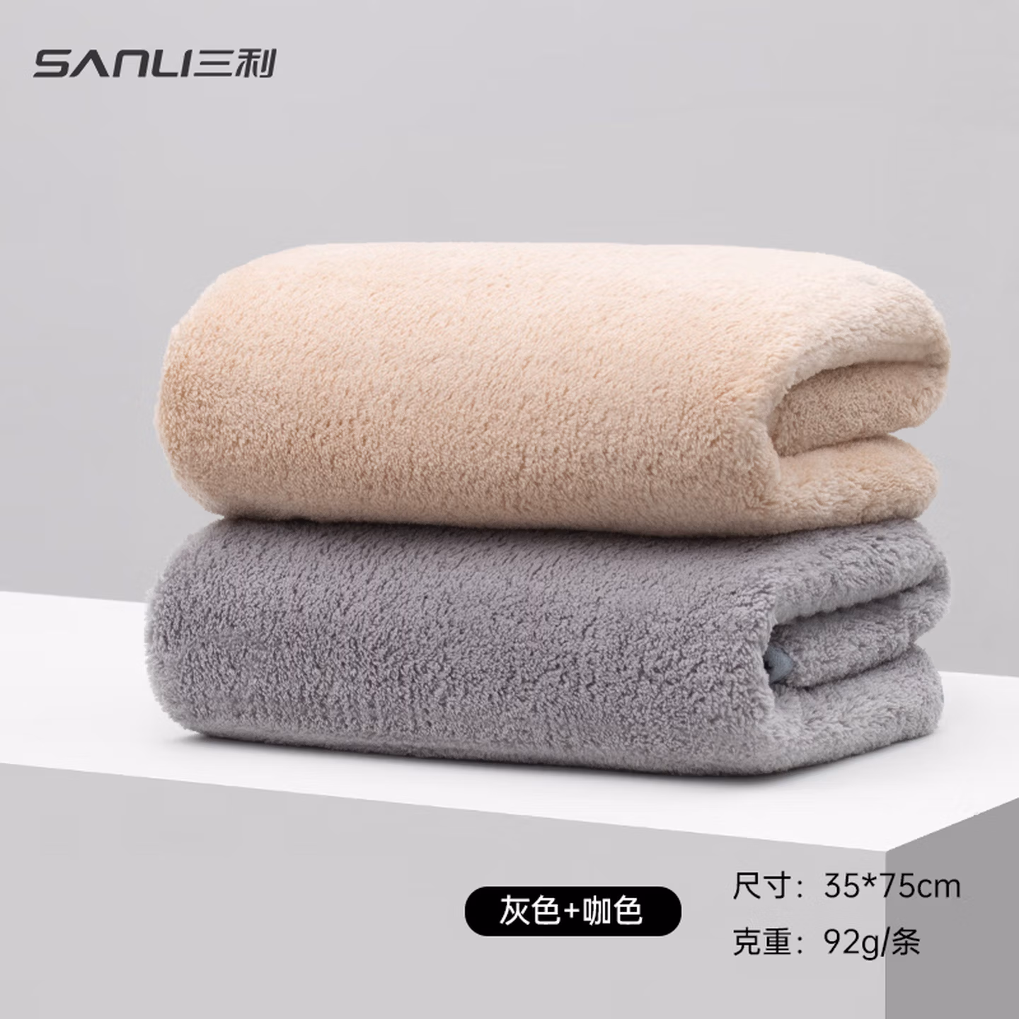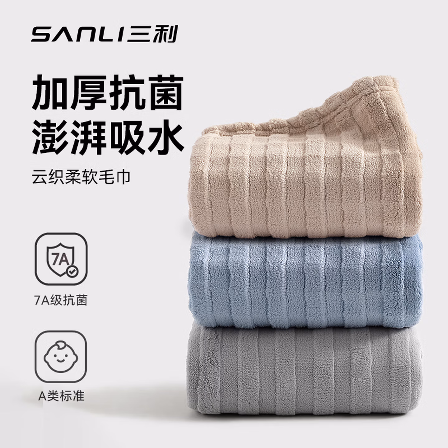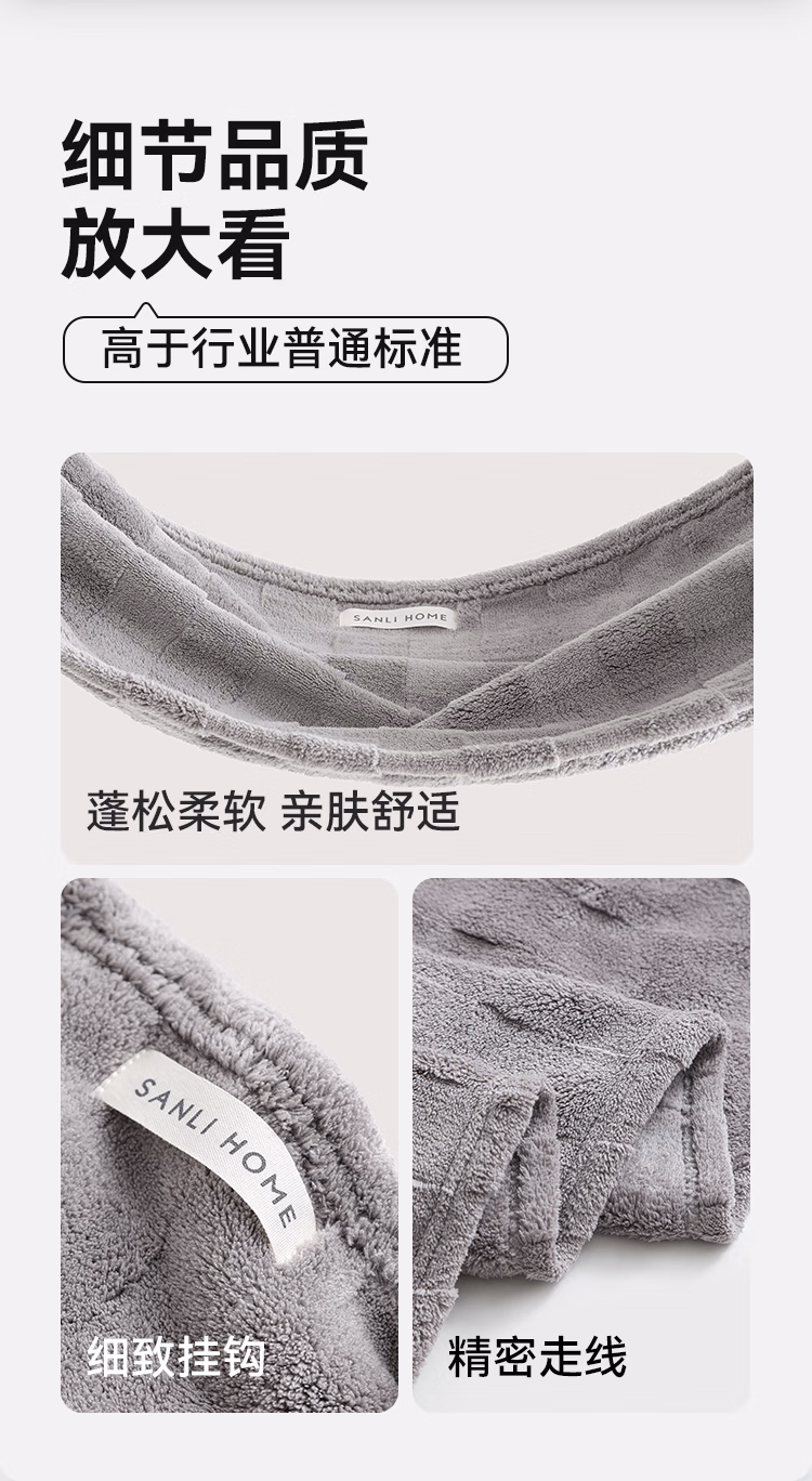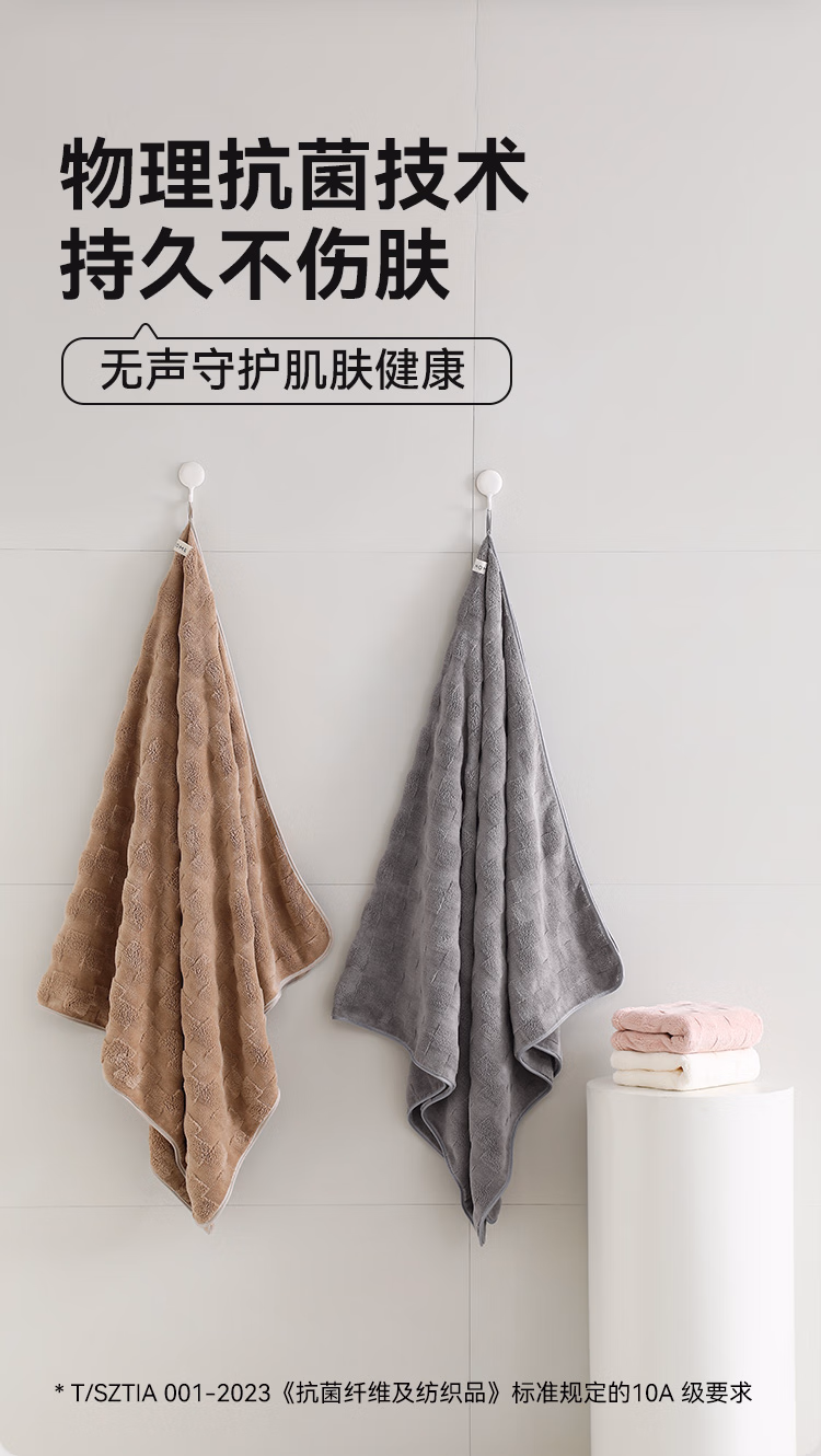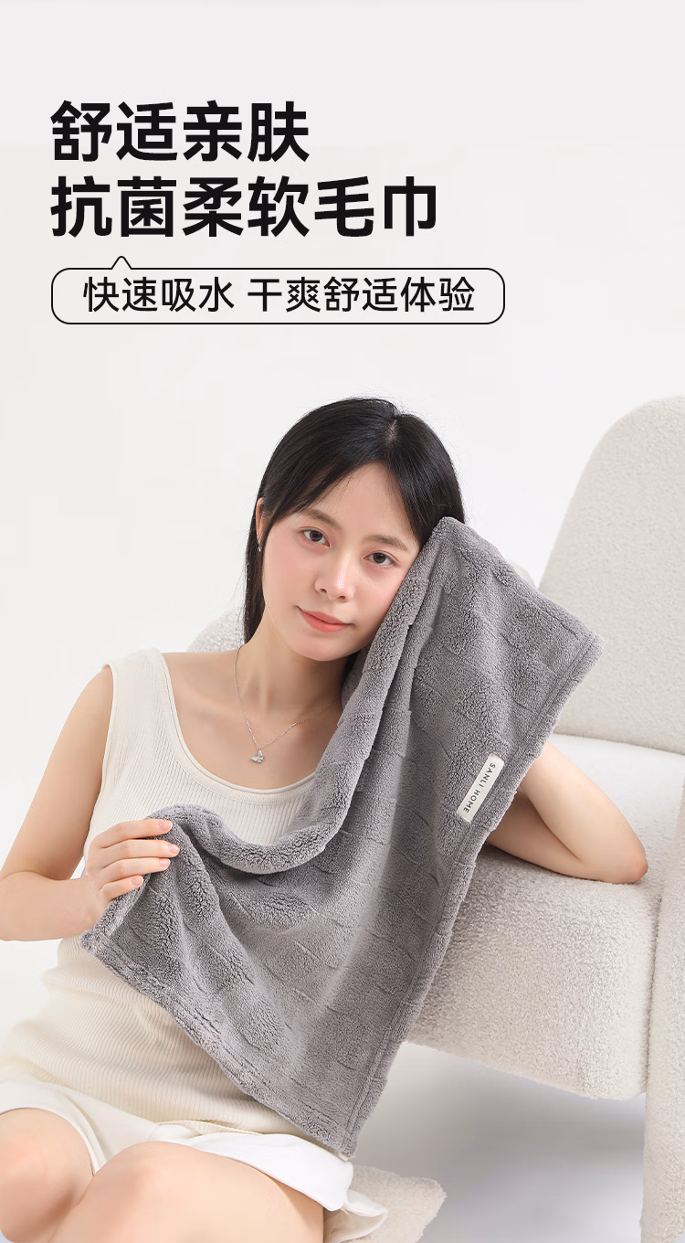 > 三利10A抗菌吸水毛巾抑臭抗阴干成年人洗脸男士洗澡专用女速干 灰咖