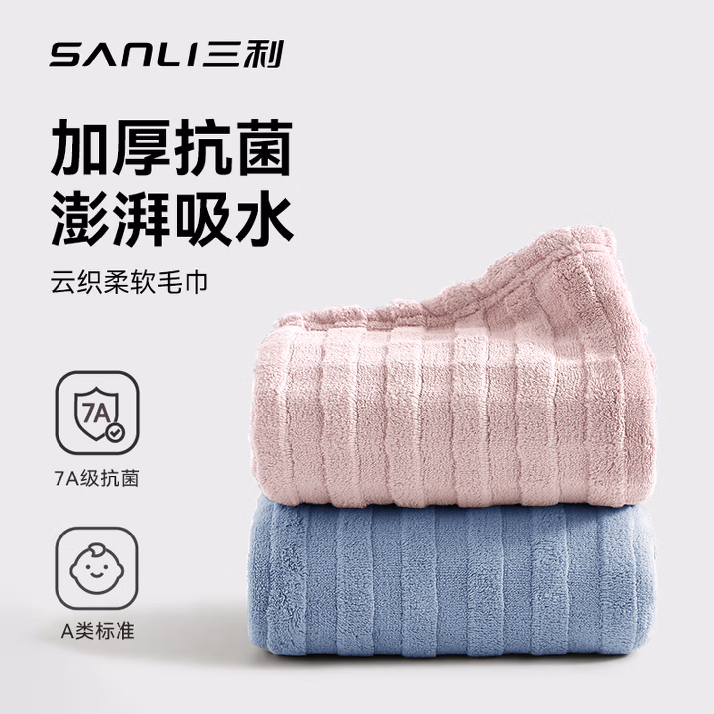 [A类云柔抗菌】加厚140g粉白 2条