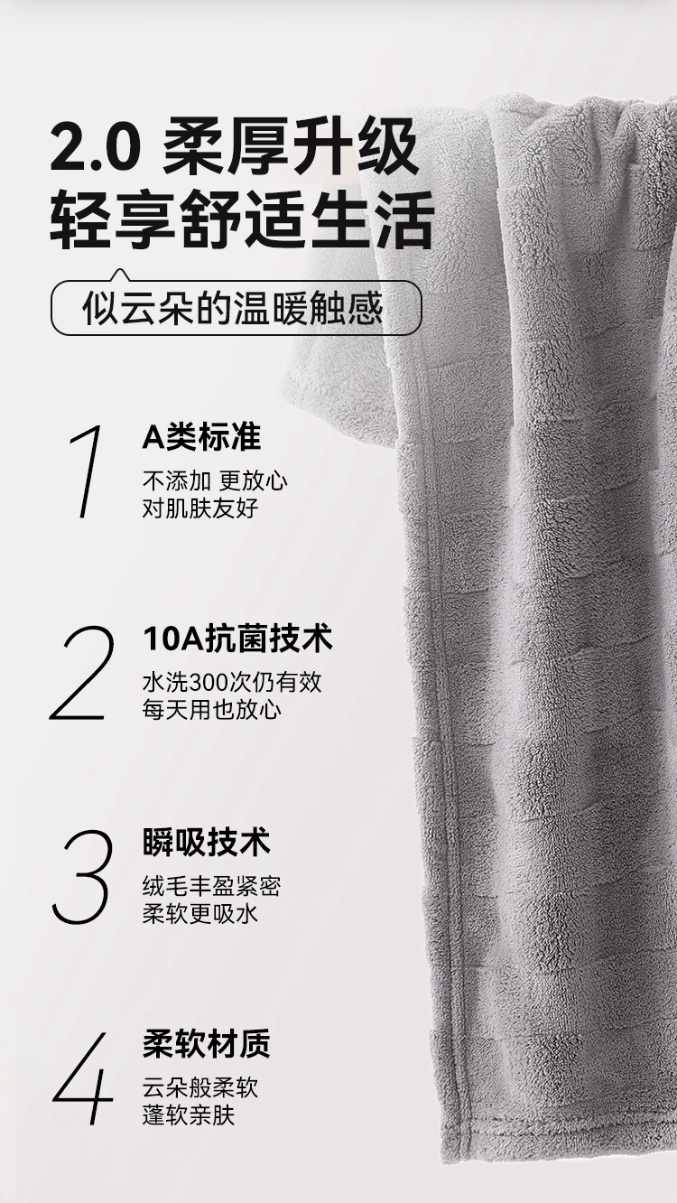 [A类云柔抗菌】加厚140g灰咖2条