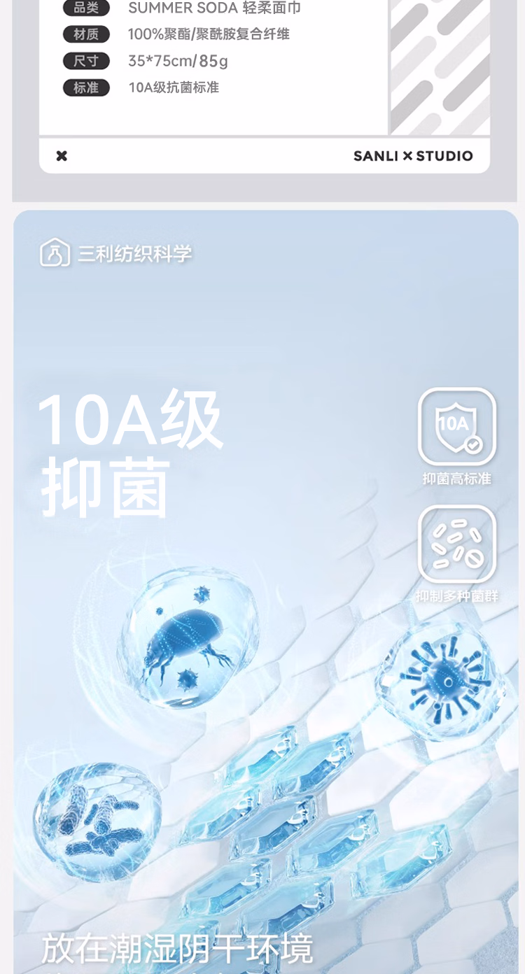 三利10A抗菌抗阴干毛巾男士洗澡专用吸水洗脸女生成年人擦手巾2条