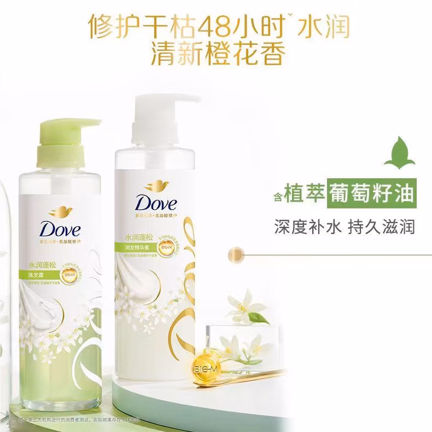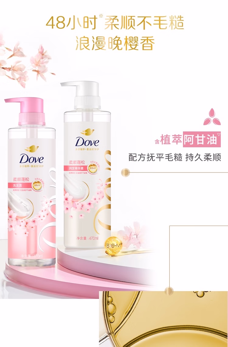 多芬(Dove)【水润蓬松】无硅油氨基酸洗发水470ml橙花香 干枯扁塌发质