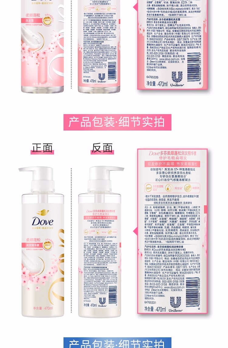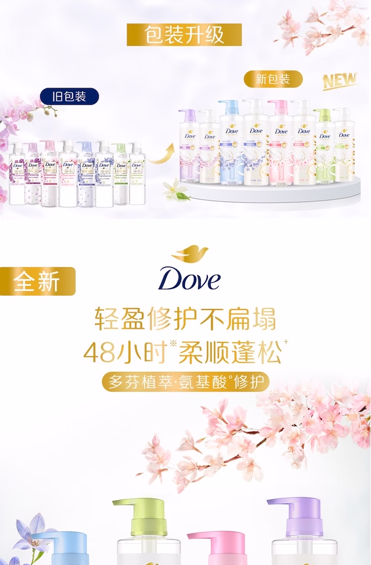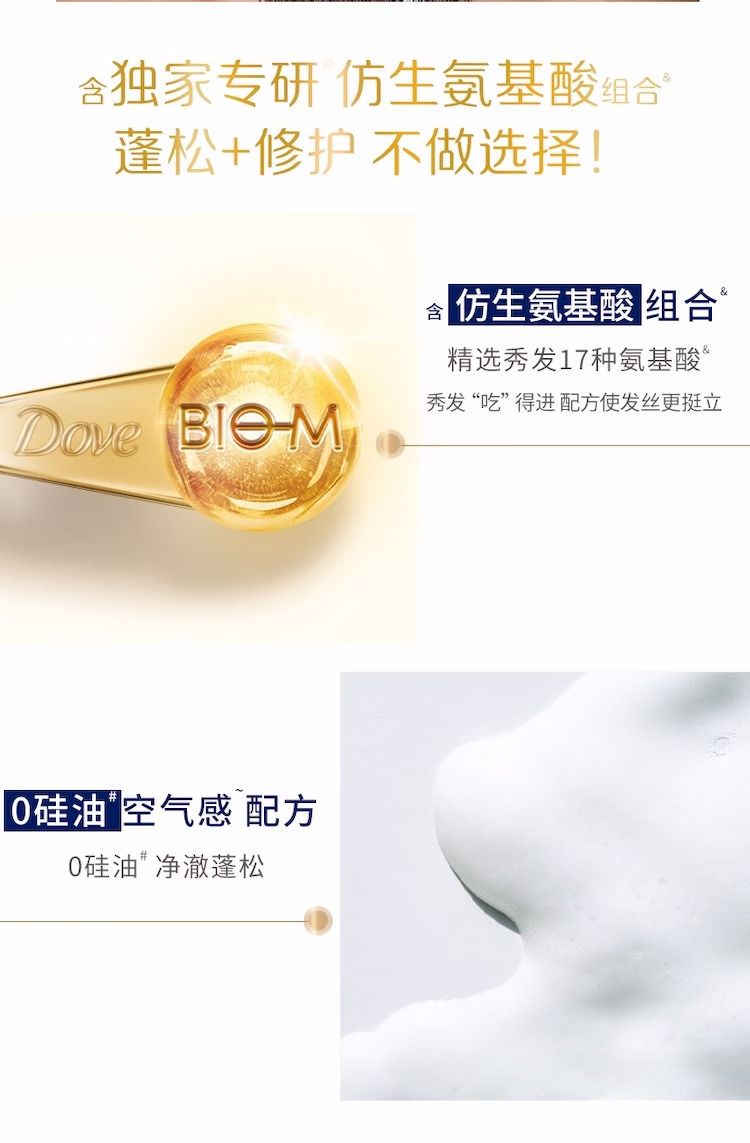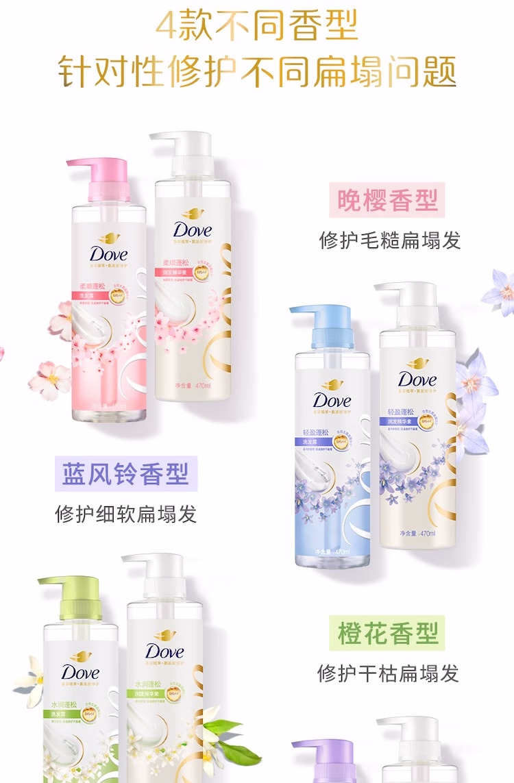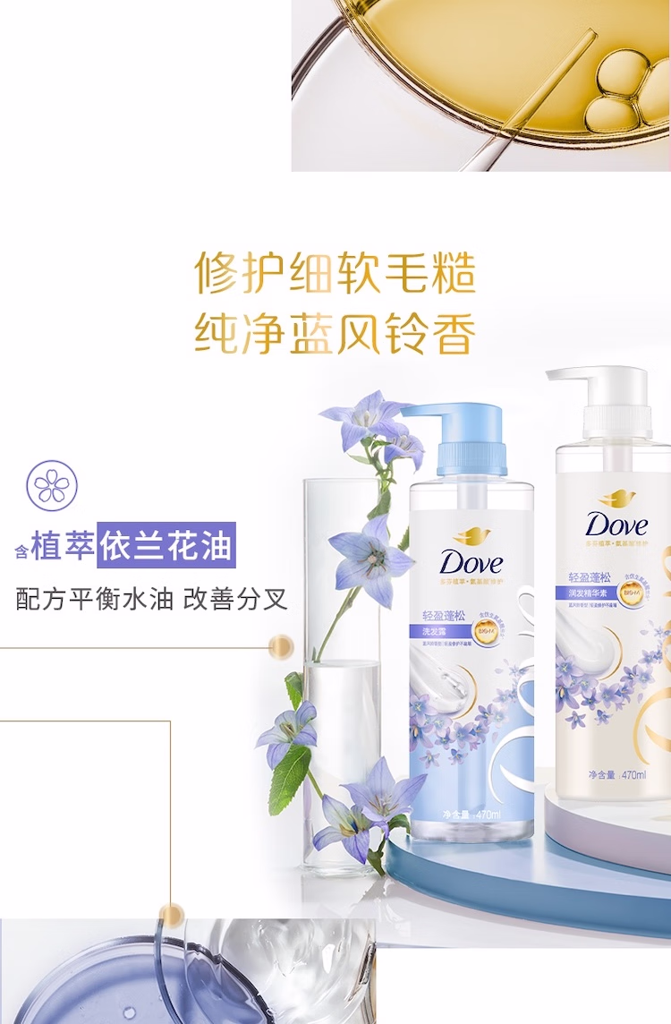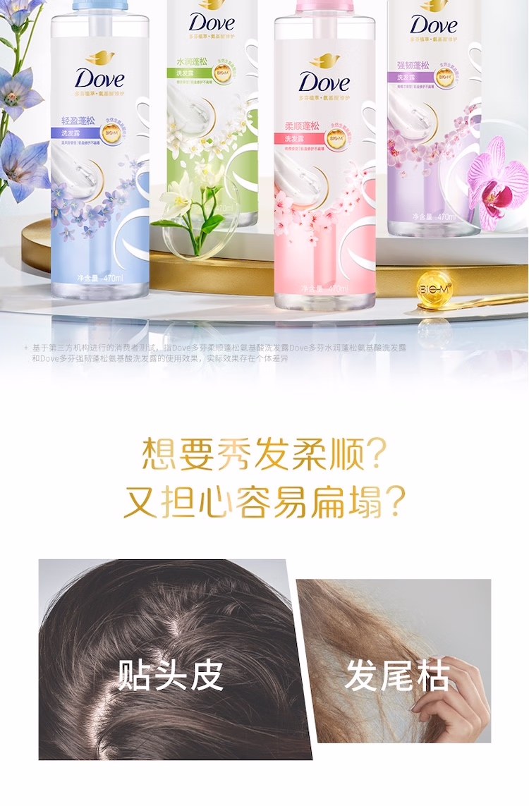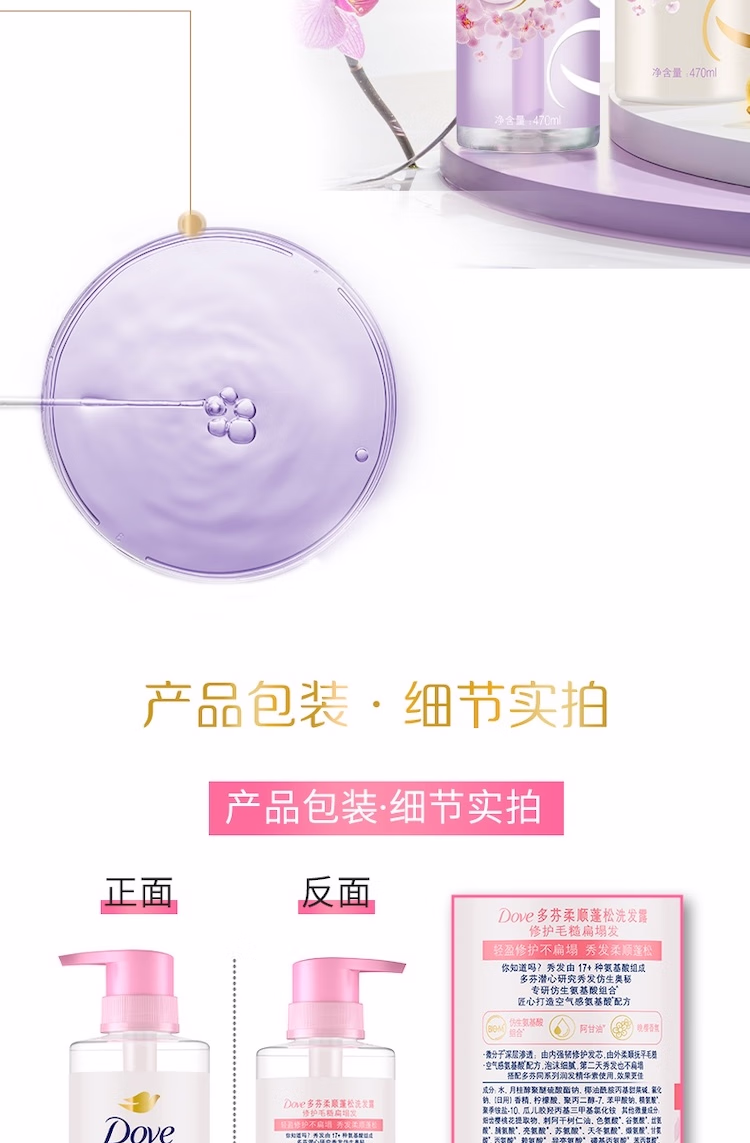 > 多芬(Dove)【水润蓬松】无硅油氨基酸洗发水470ml橙花香 干枯扁塌发质
