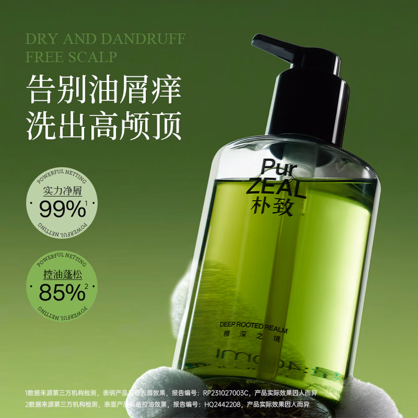 朴致 PURZEAL控油蓬松洗发水400ml去屑蓬云织雾清爽去油清洁洗发露洗头水