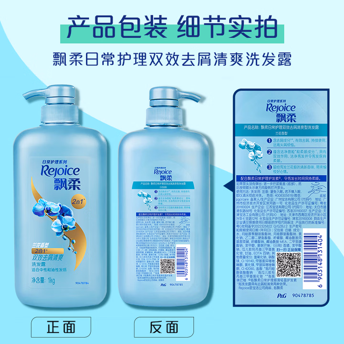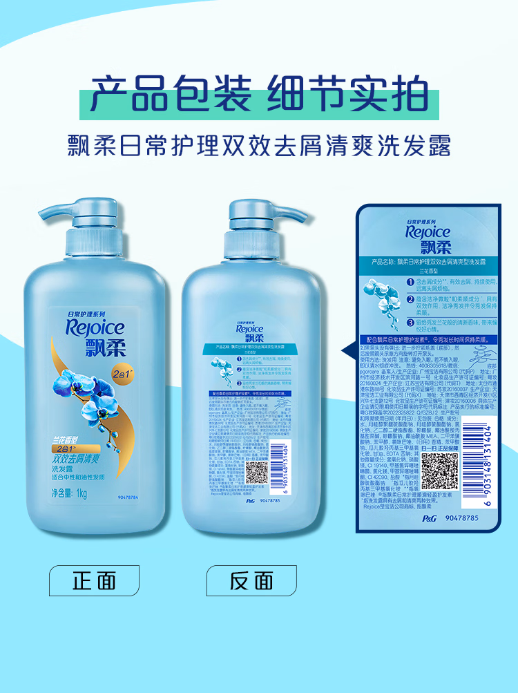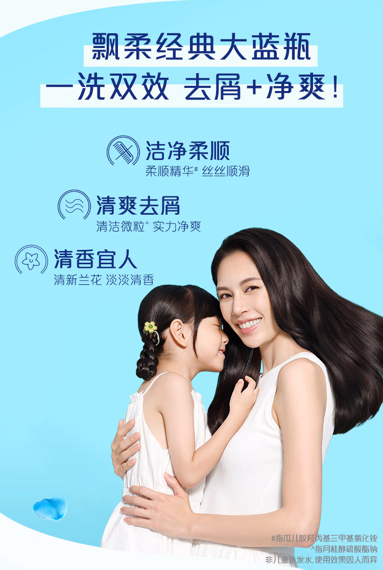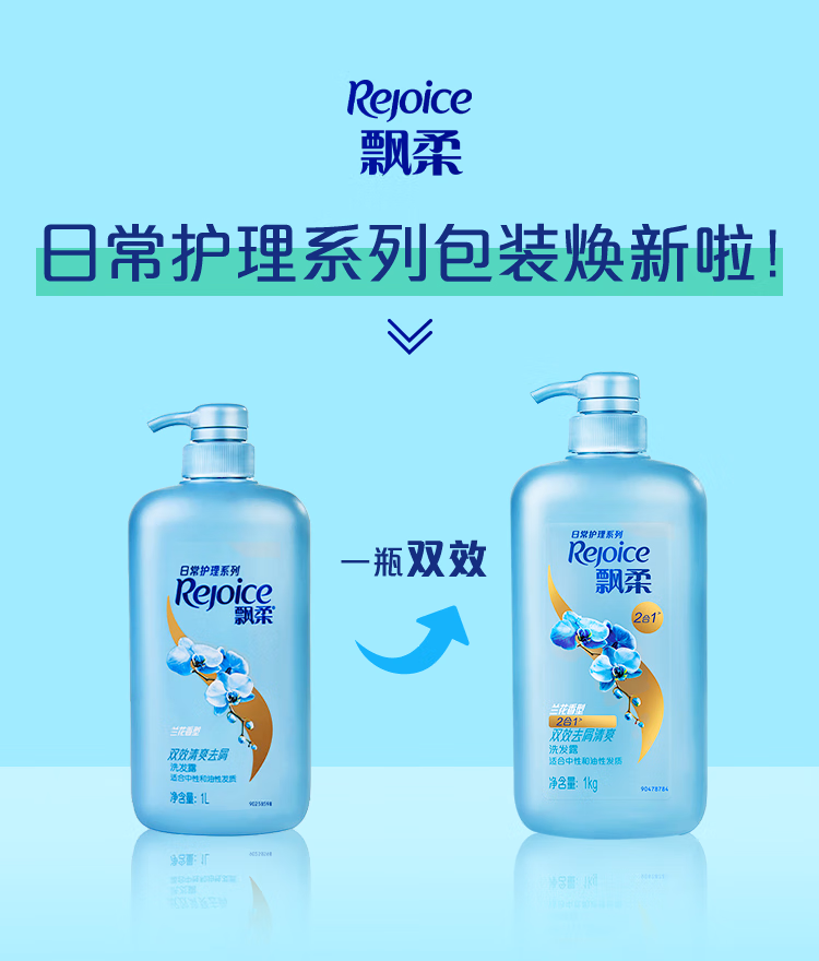 > 飘柔套装日常护理去屑清爽型1KG+水润洁顺型1KG洗发水去油