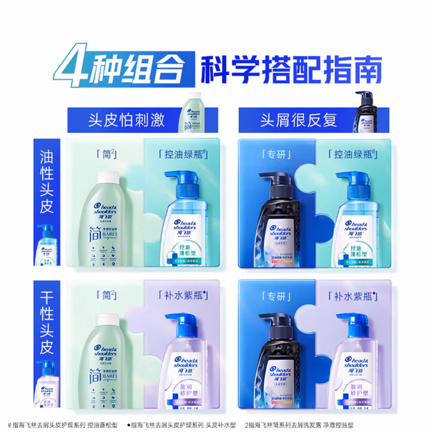 海飞丝专研去屑控油洗发水300g专利配方控油排浊男士女士洗头膏洗发露