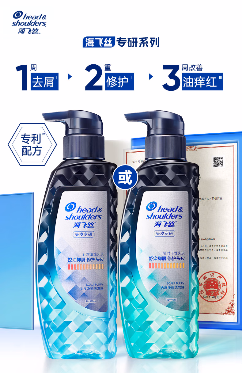 > 海飞丝专研去屑控油洗发水300g专利配方控油排浊男士女士洗头膏洗发露