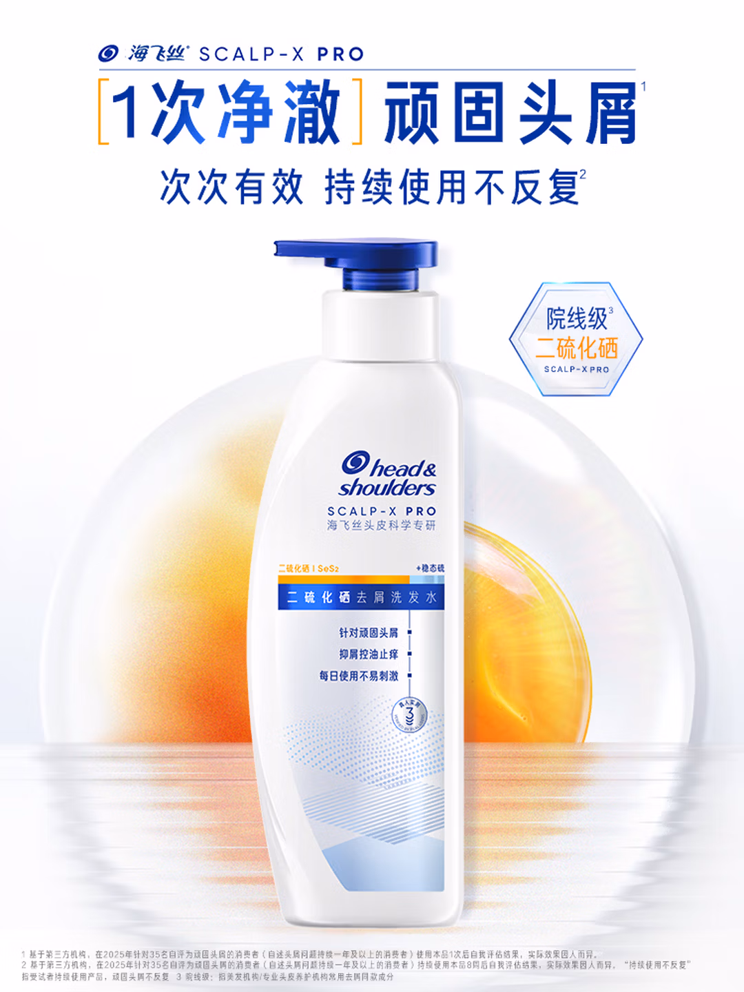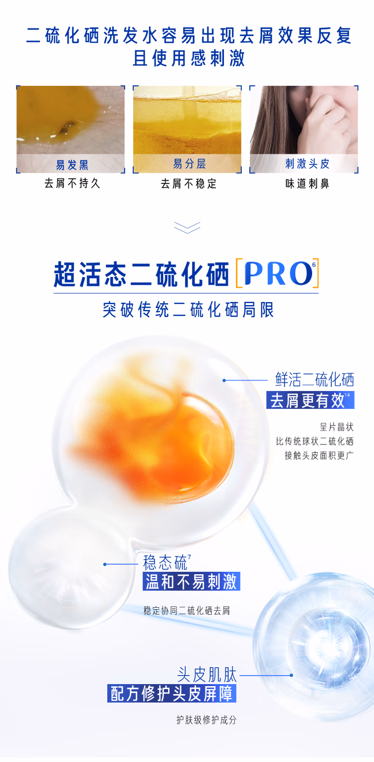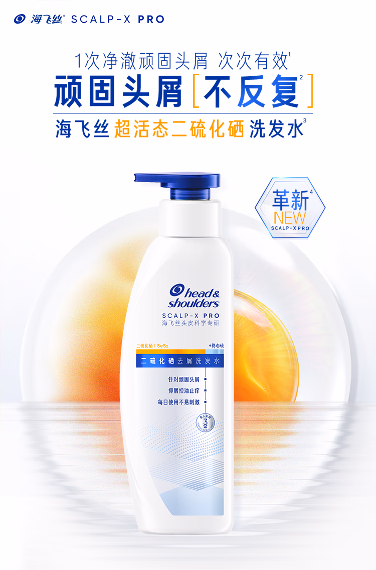 海飞丝超活态二硫化硒洗发水去屑止痒控油男女士敏肌可用洗发液护发180g