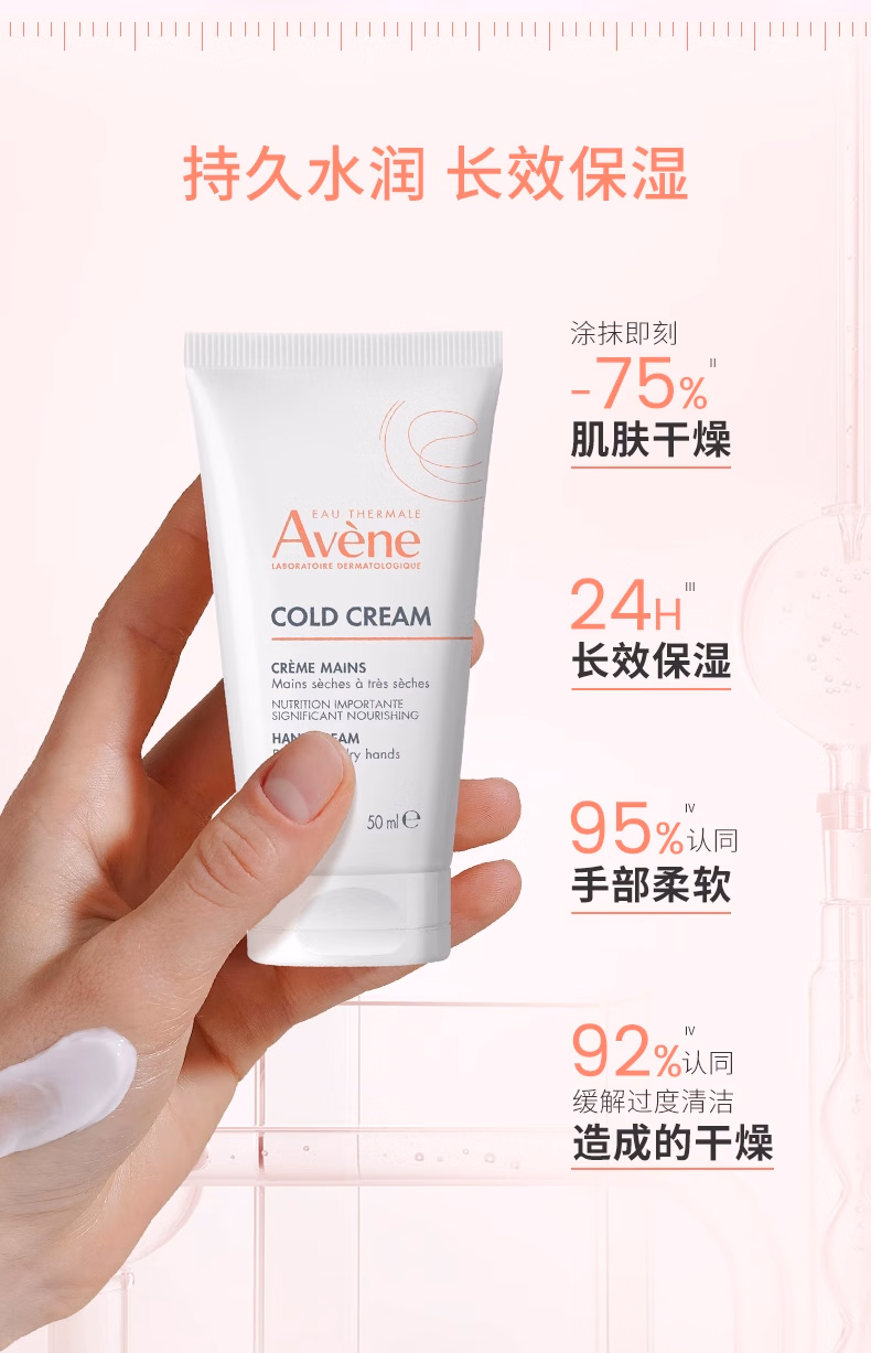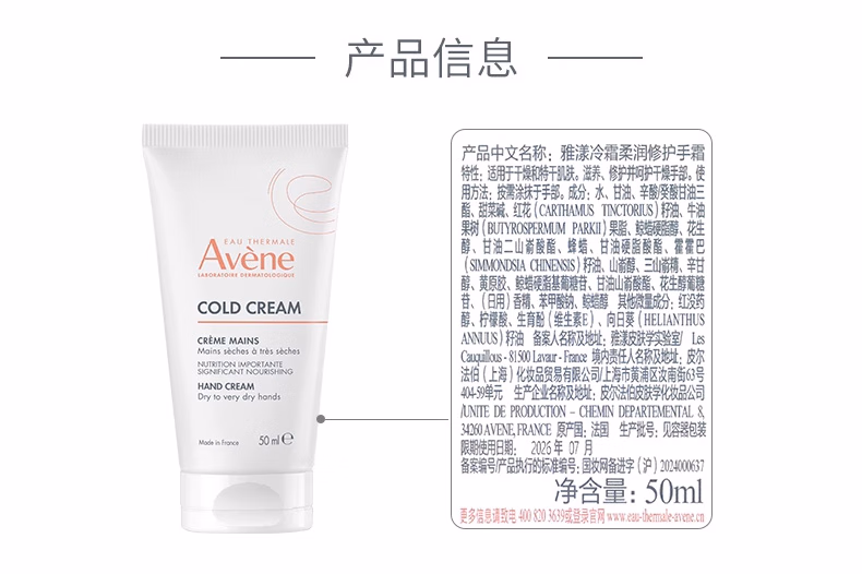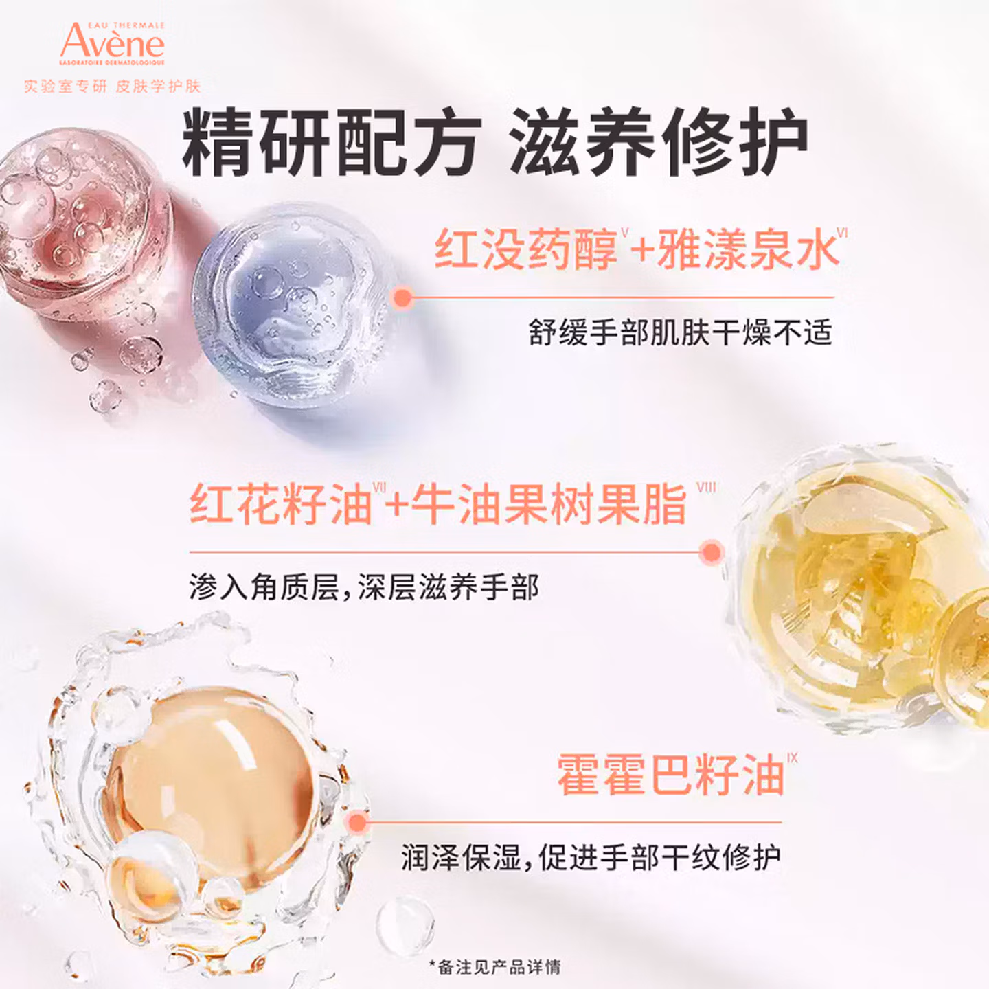 雅漾(Avene)冷霜柔润修护手霜50ML深层保湿滋润舒缓敏感护手霜 护肤品