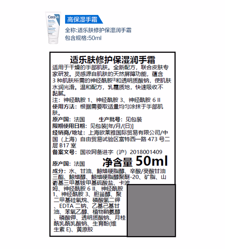 > 适乐肤(CeraVe)高保湿护手霜50ml