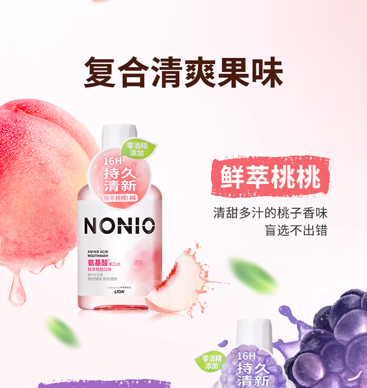 狮王(lion)NONIO氨基酸漱口水桃桃黑莓450ml*2零酒精零蔗糖