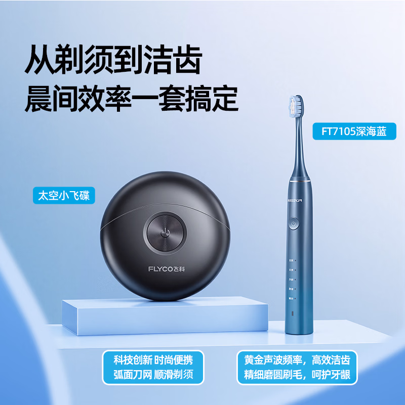 飞科(FLYCO)电动牙刷男士专用成人情侣送男女朋友生日节日礼物智能声波软毛牙刷FT7105深海蓝