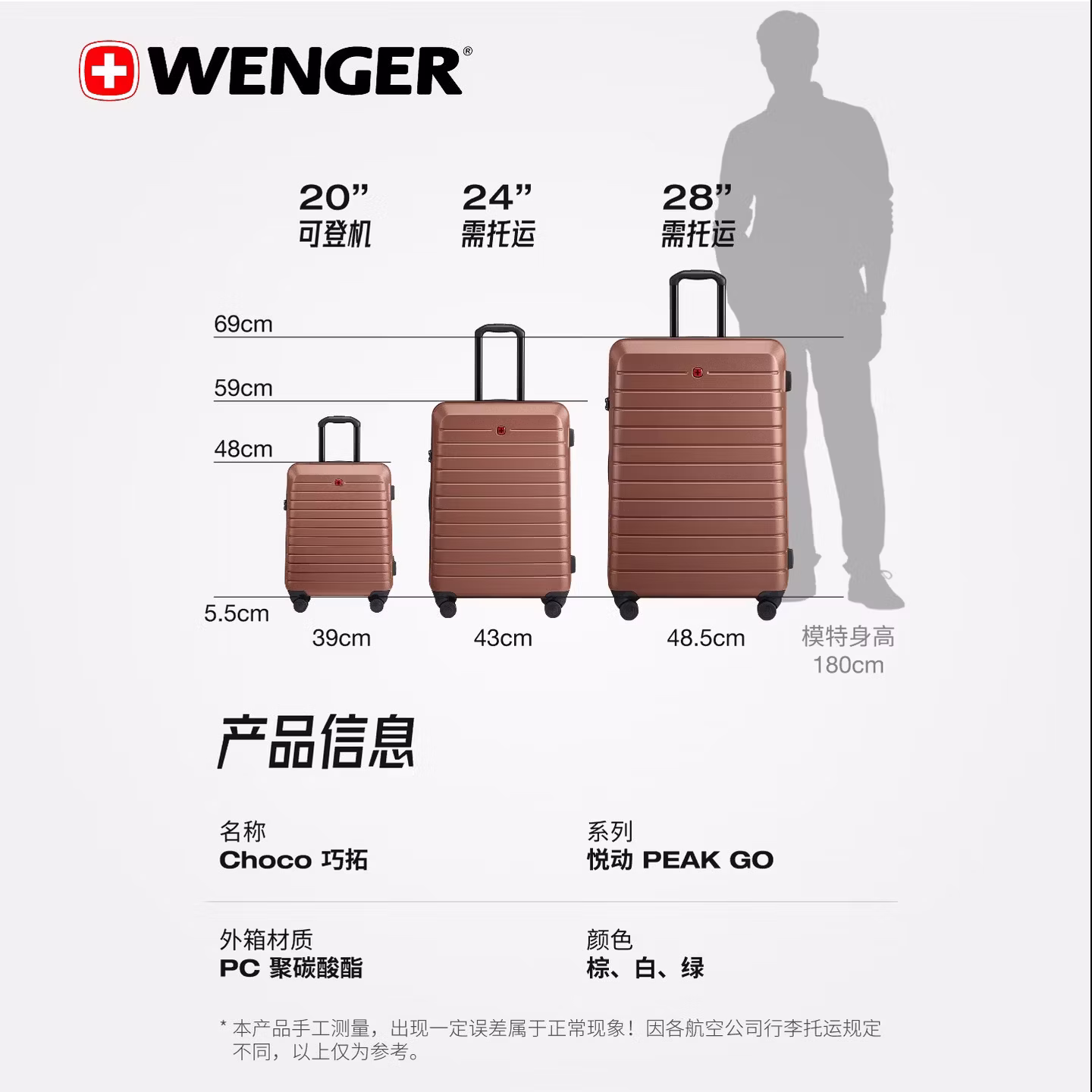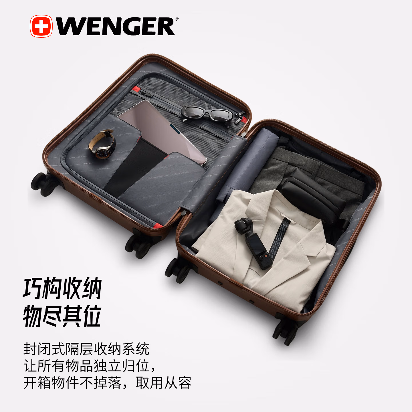 威戈(WENGER)瑞士军刀行李箱20英寸拉杆箱万向轮登机箱旅行密码箱巧克力色