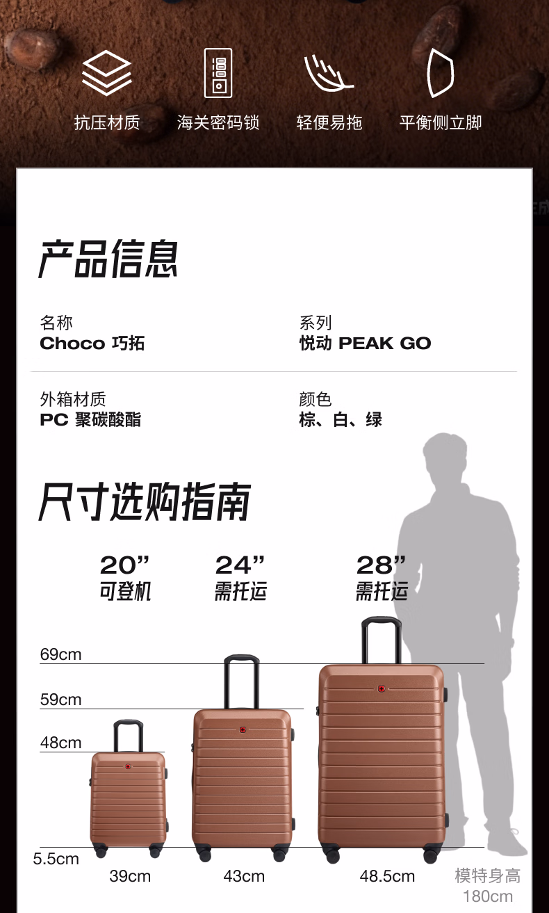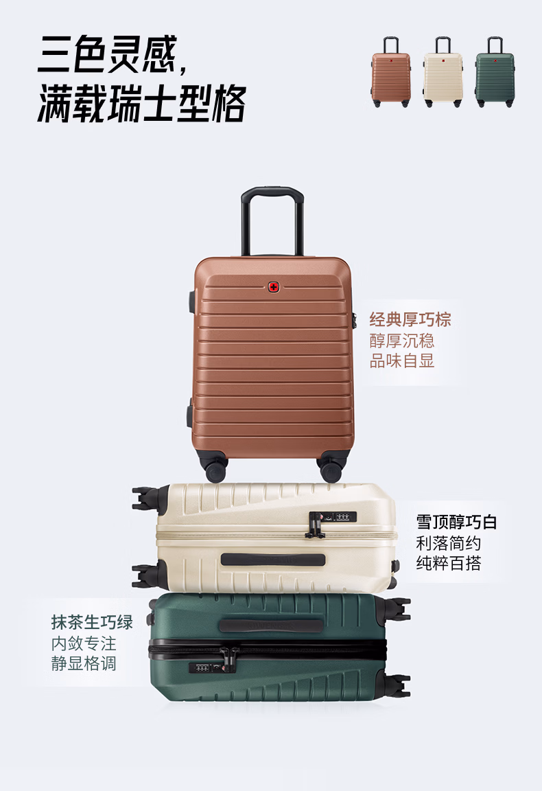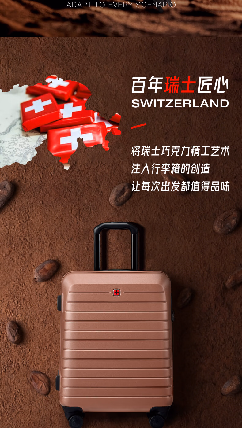 > 威戈(WENGER)瑞士军刀行李箱20英寸拉杆箱万向轮登机箱旅行密码箱巧克力色