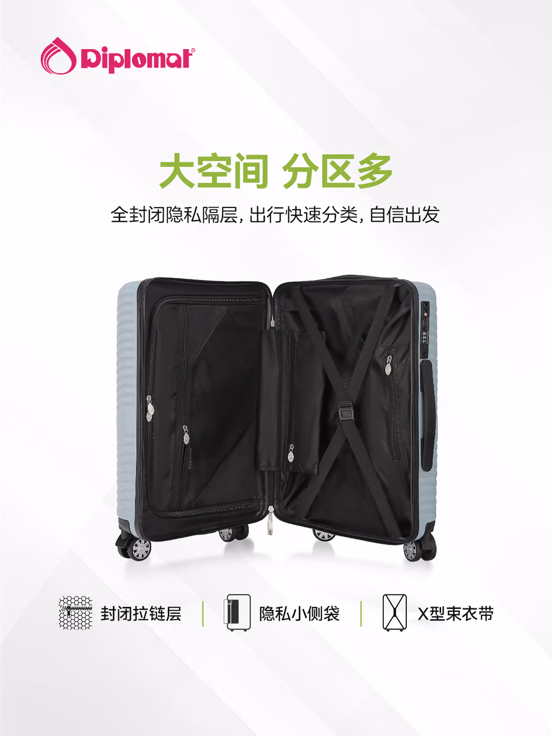 > Diplomat外交官行李箱20英寸磨砂拉杆箱男旅行箱子登机箱密码箱女TC-23252