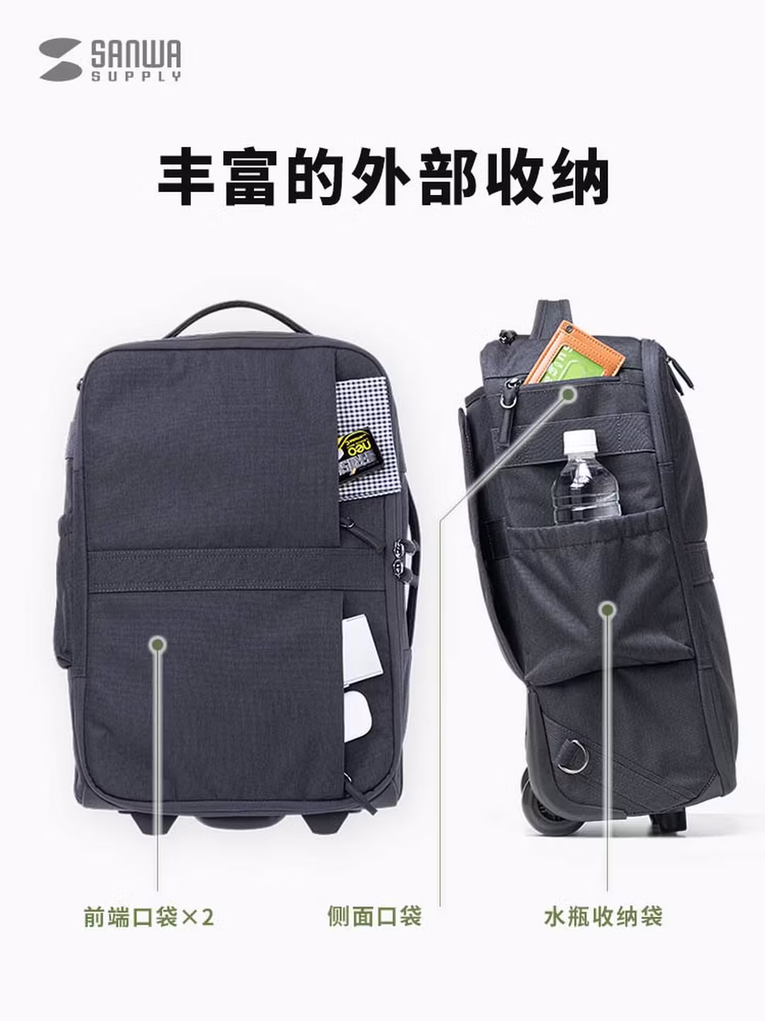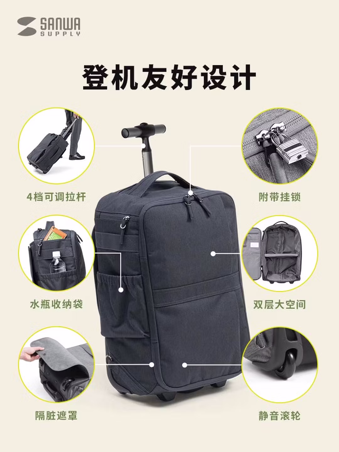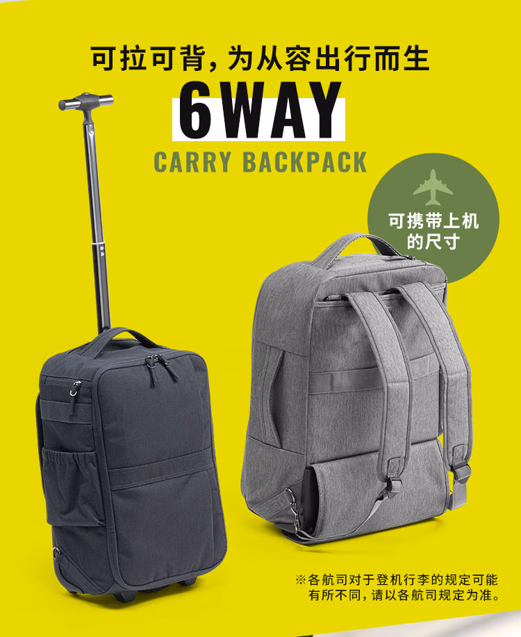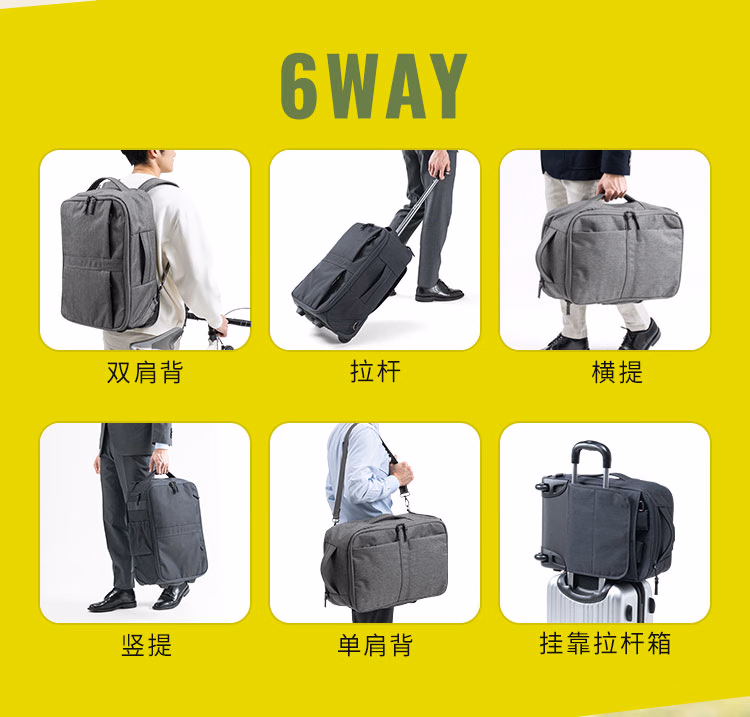 山业(SANWA)多功能拉杆双肩包商务背包带轮拉杆书包行李包旅行包可登机22升