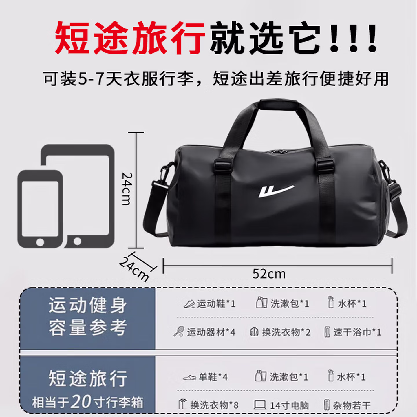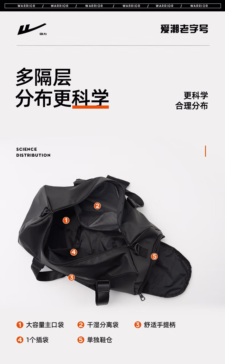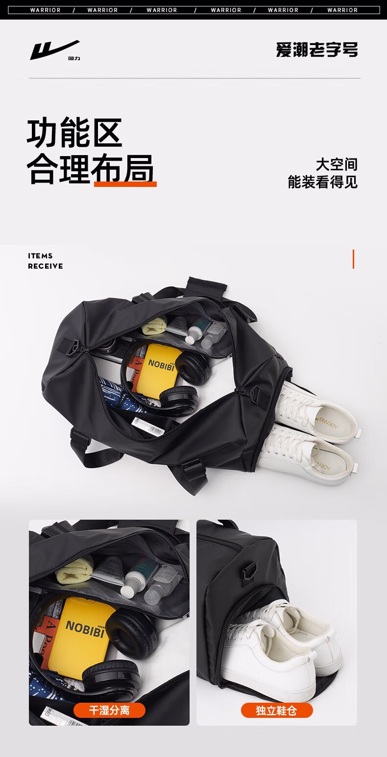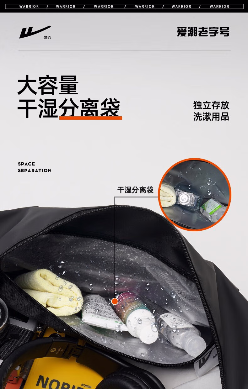 > 回力(Warrior)旅行包男干湿分离健身包出差手提包收纳运动包行李包大容量游泳包