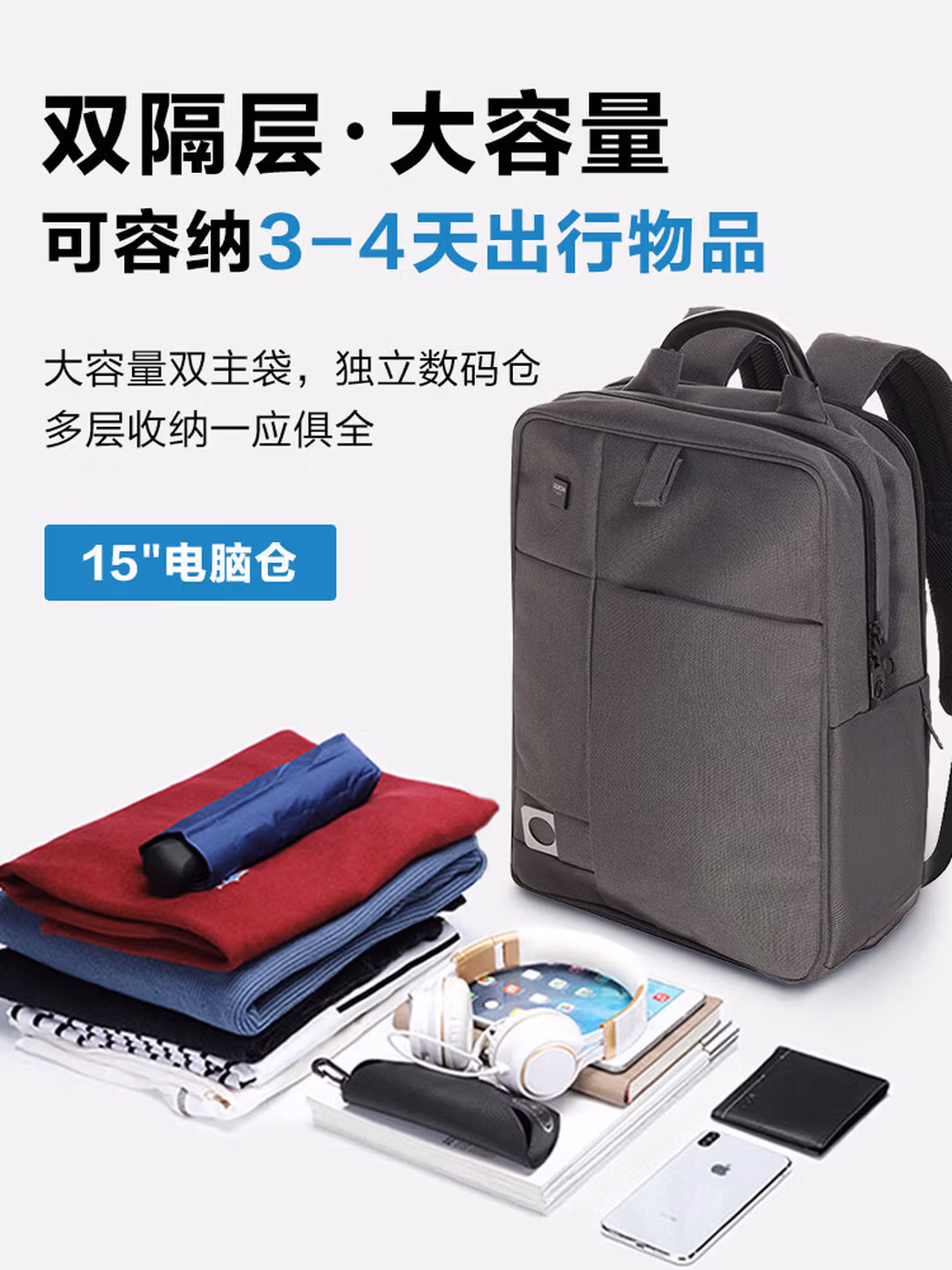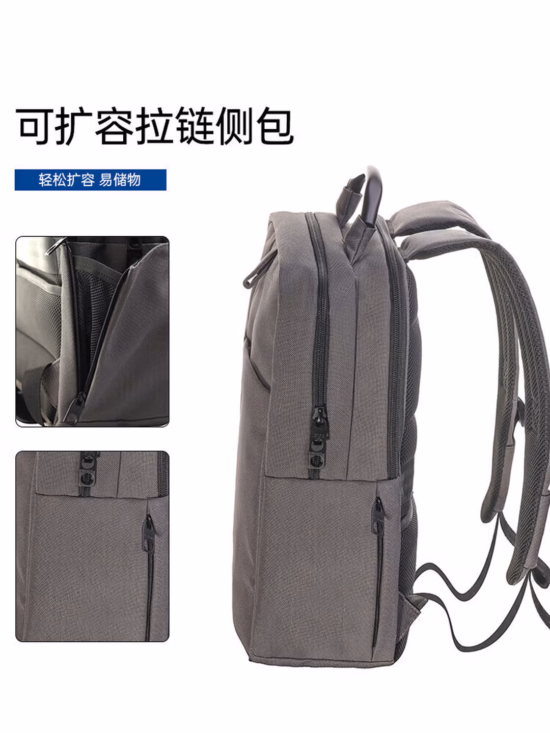 [带侧兜]双层容量拉杆带灰色