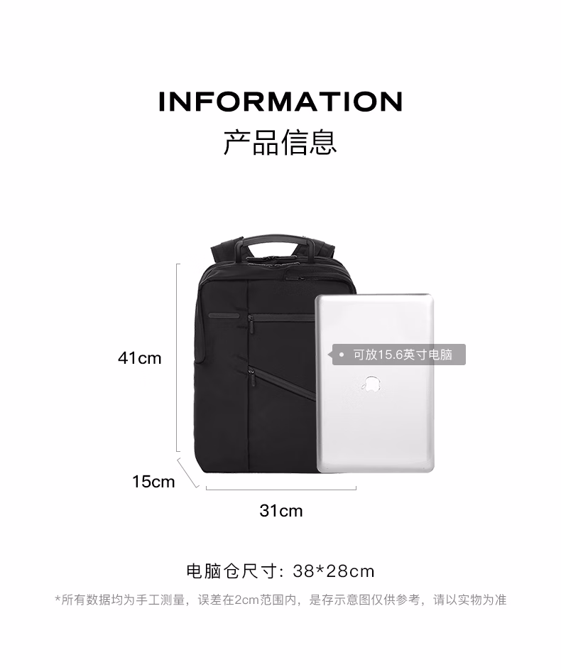 双层容量 可隐藏背带黑色