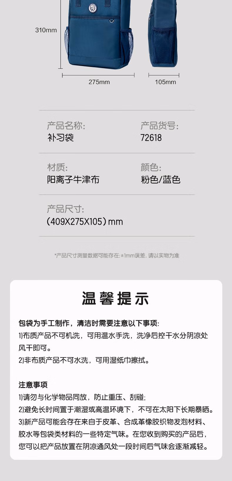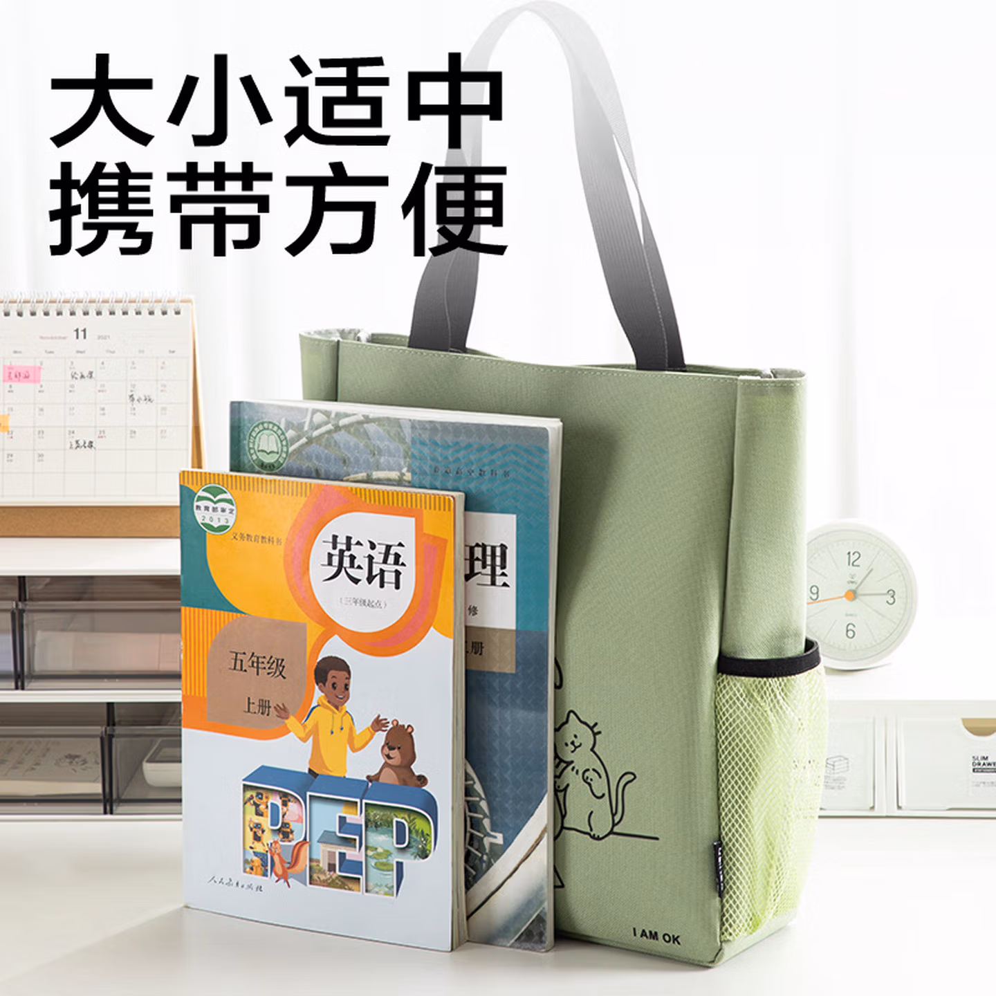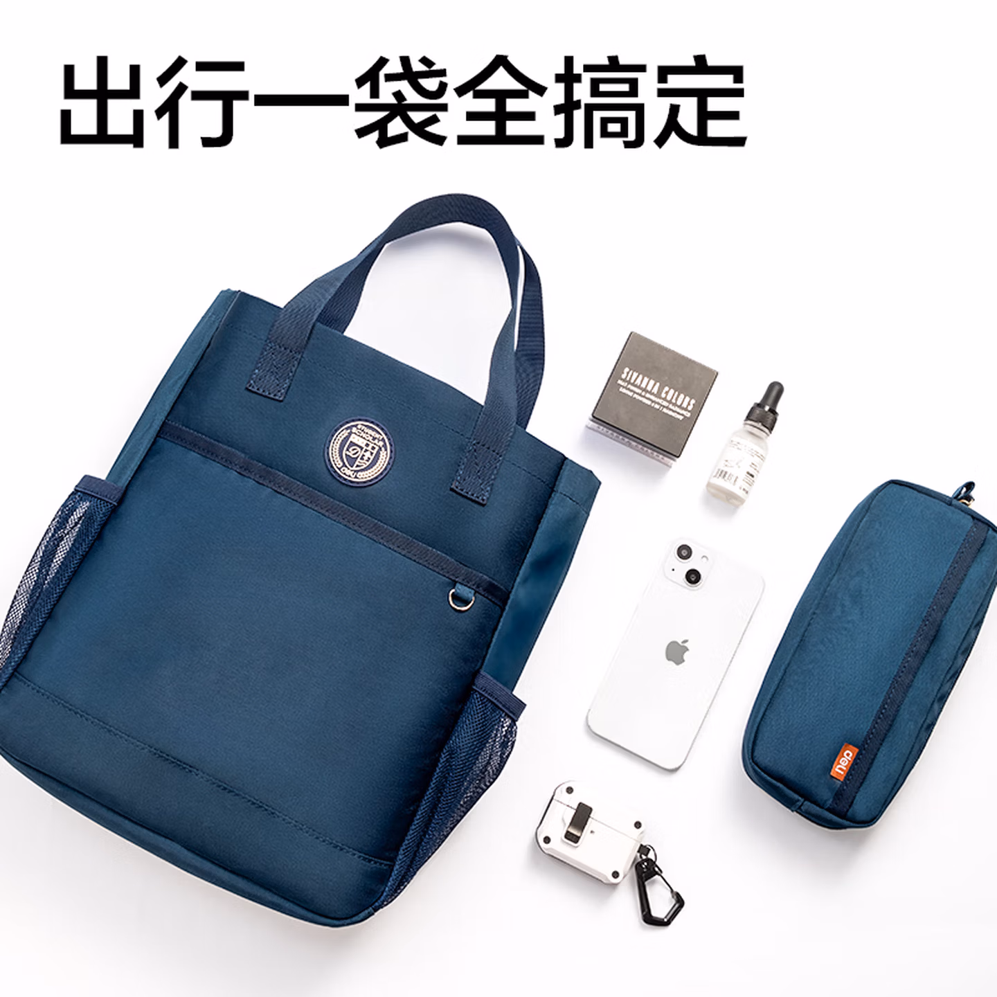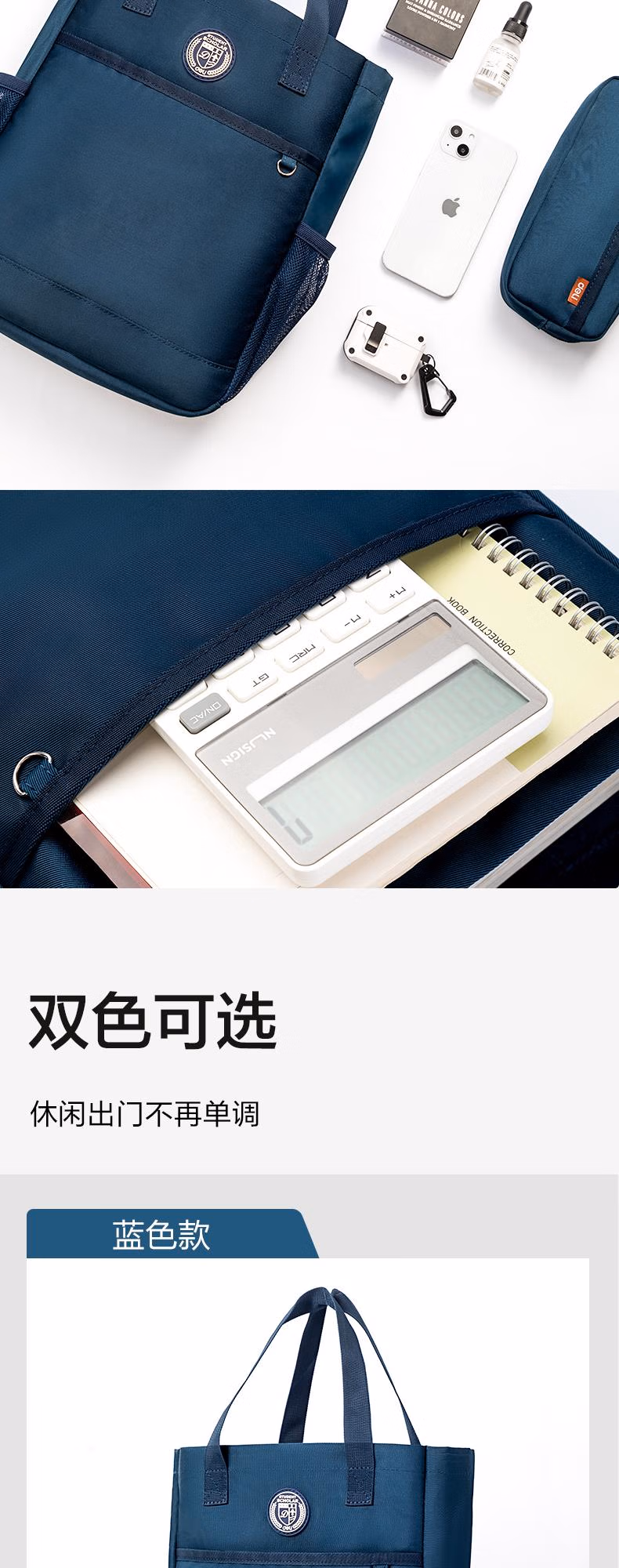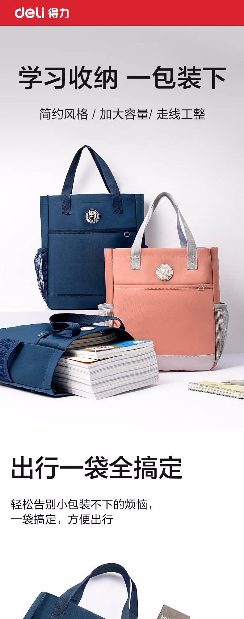> 得力学生补习袋 大容量拎书袋多功能手提袋购物袋 儿童美术袋补课书包 深蓝色开学必备