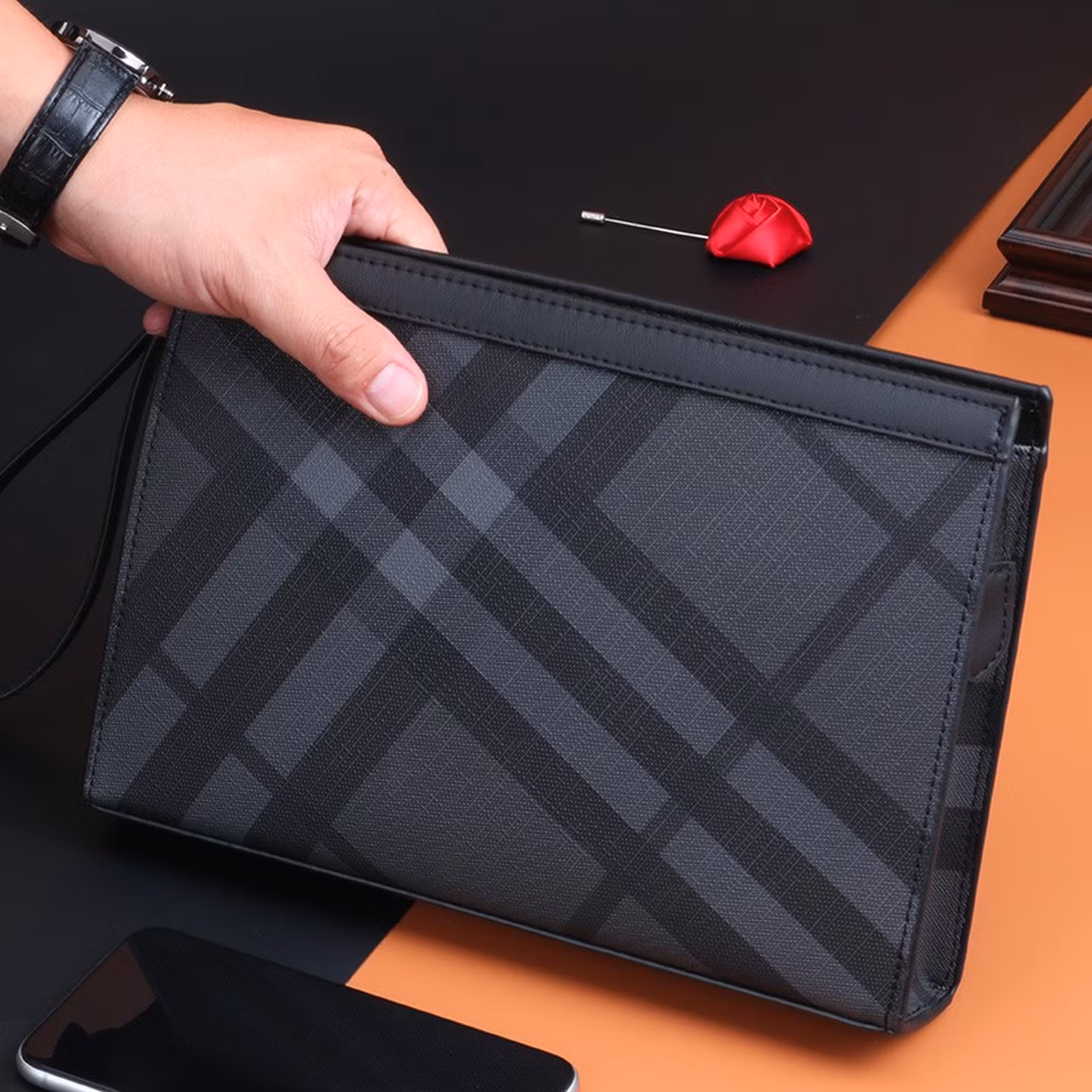 CalaceKonla手拿包男商务手包男士潮牌信封包时尚休闲手夹包手抓包大容量CK40 斜纹款