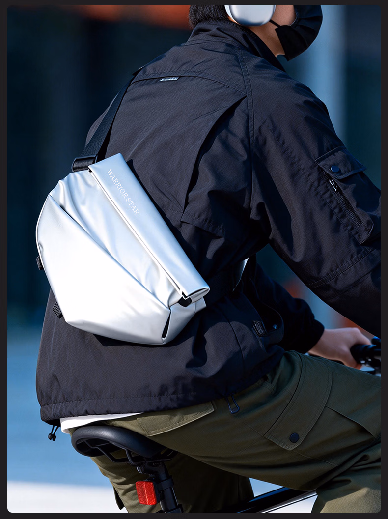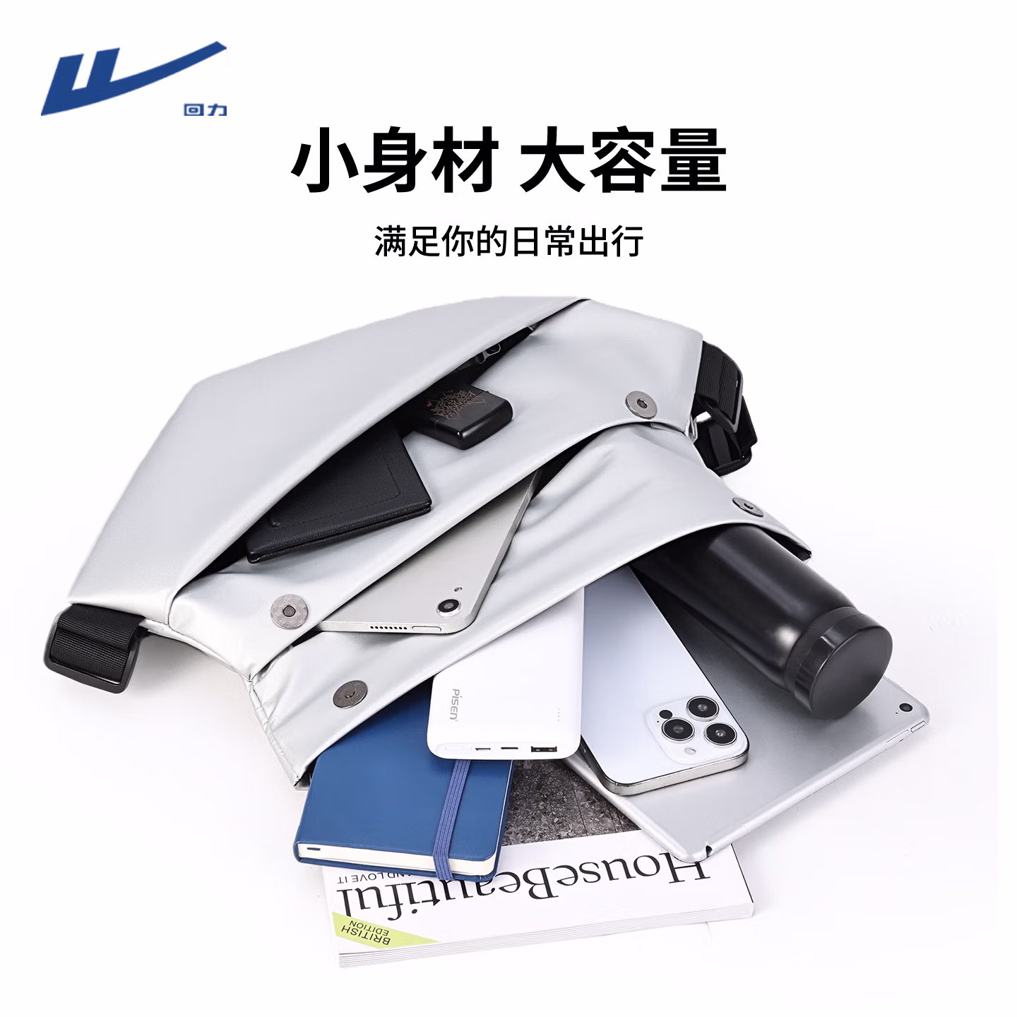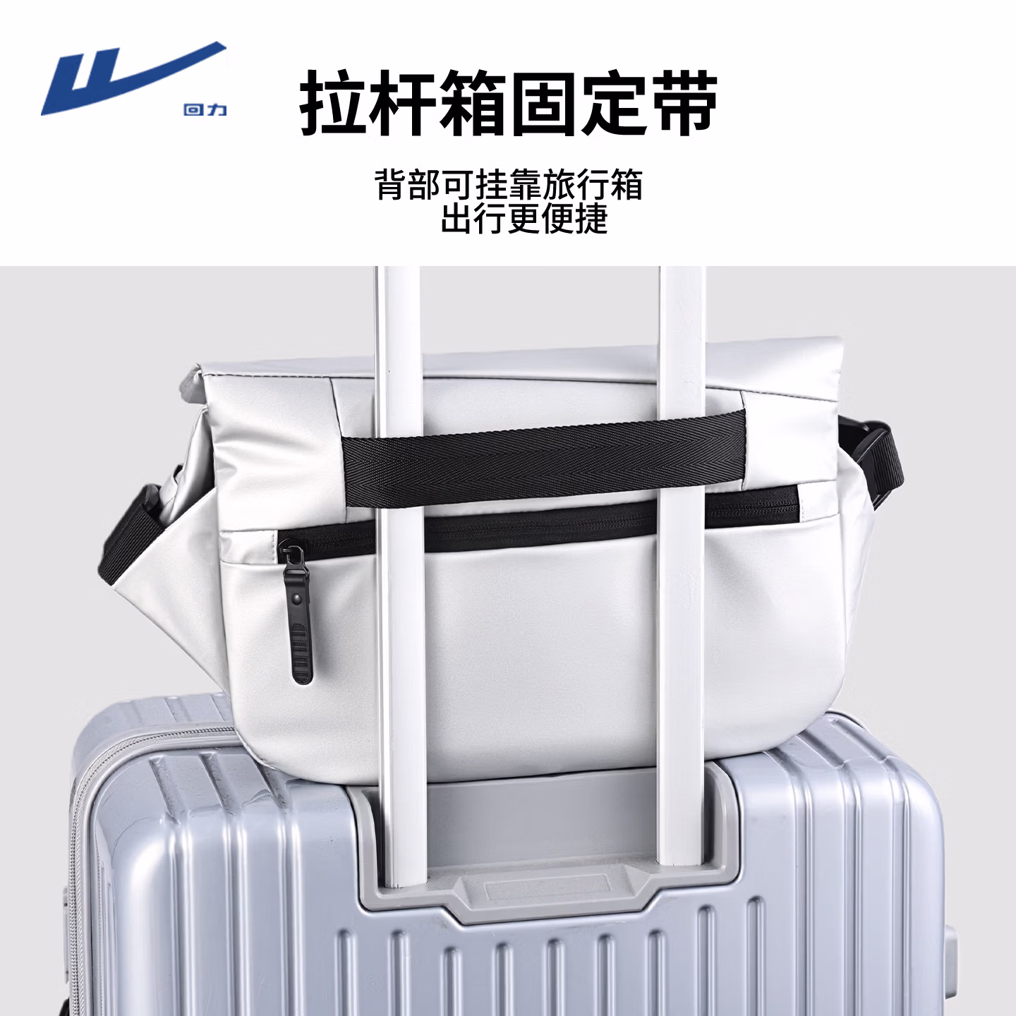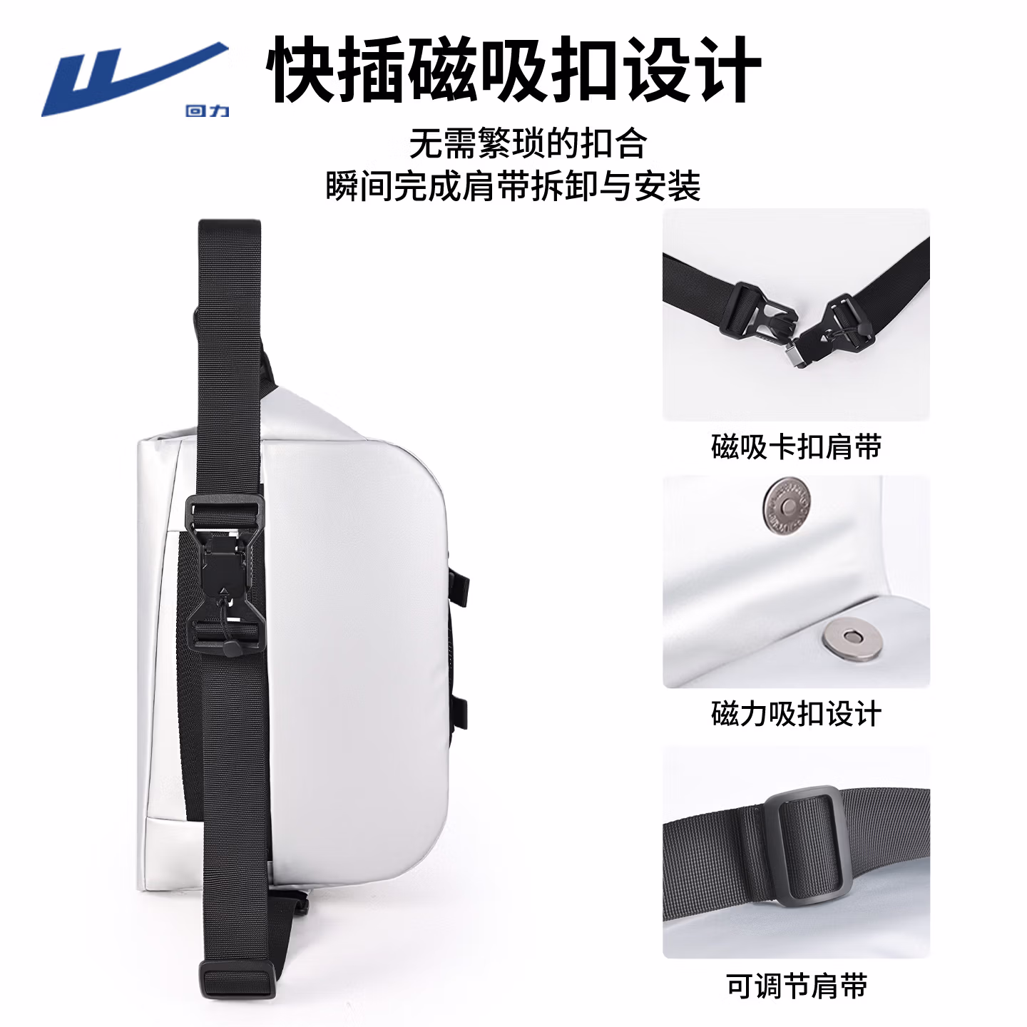 > 回力(Warrior)男士斜挎包通勤包胸包邮差包骑行包机车运动男生单肩包便携磁吸扣 银白色