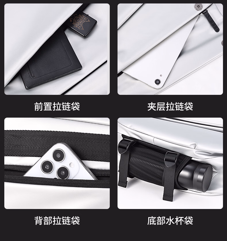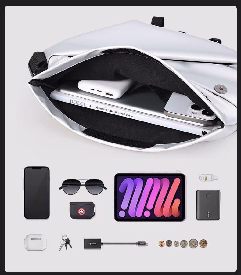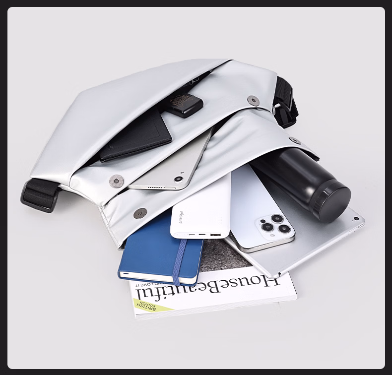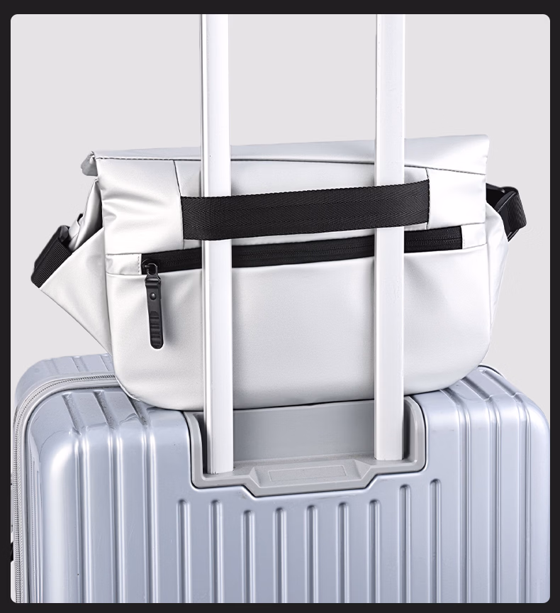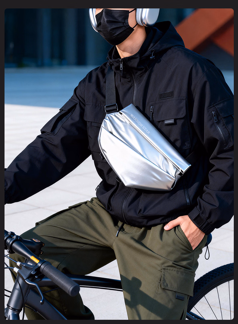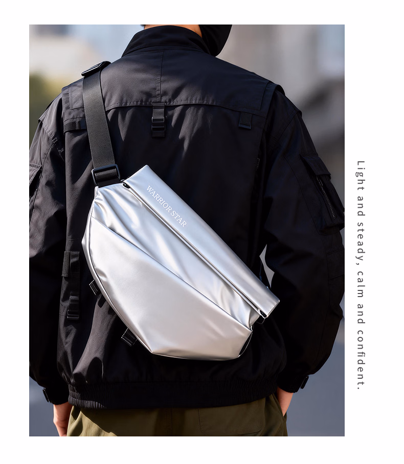 > 回力(Warrior)男士斜挎包通勤包胸包邮差包骑行包机车运动男生单肩包便携磁吸扣 银白色